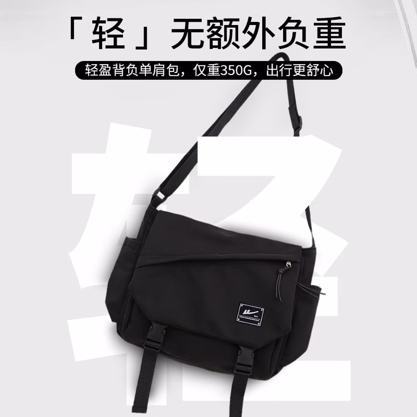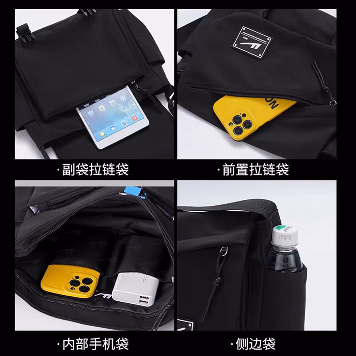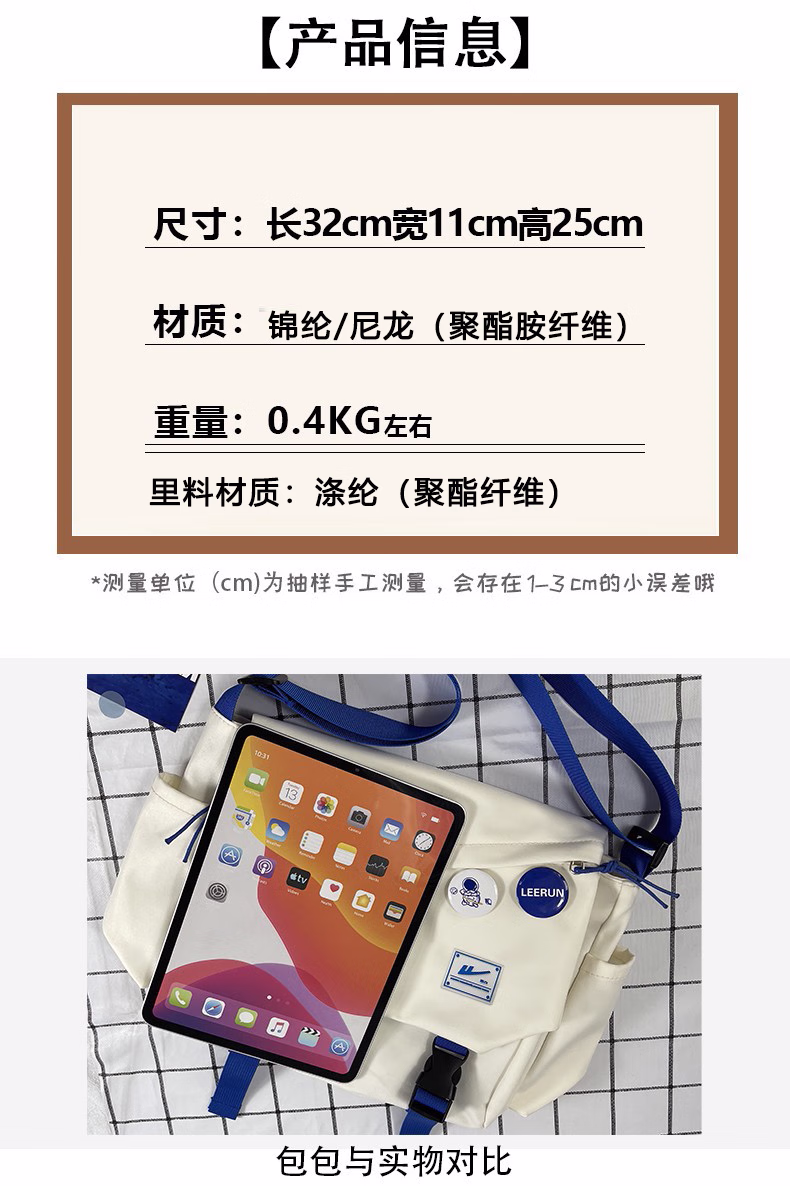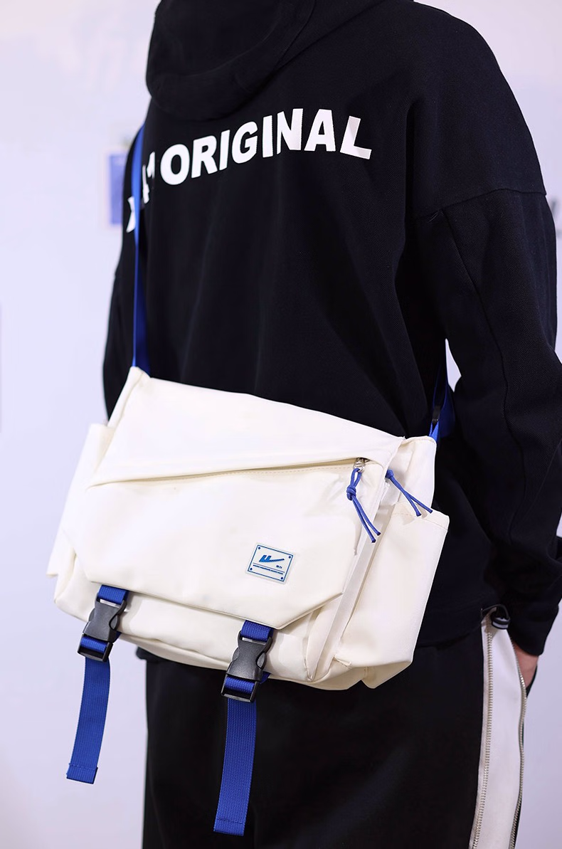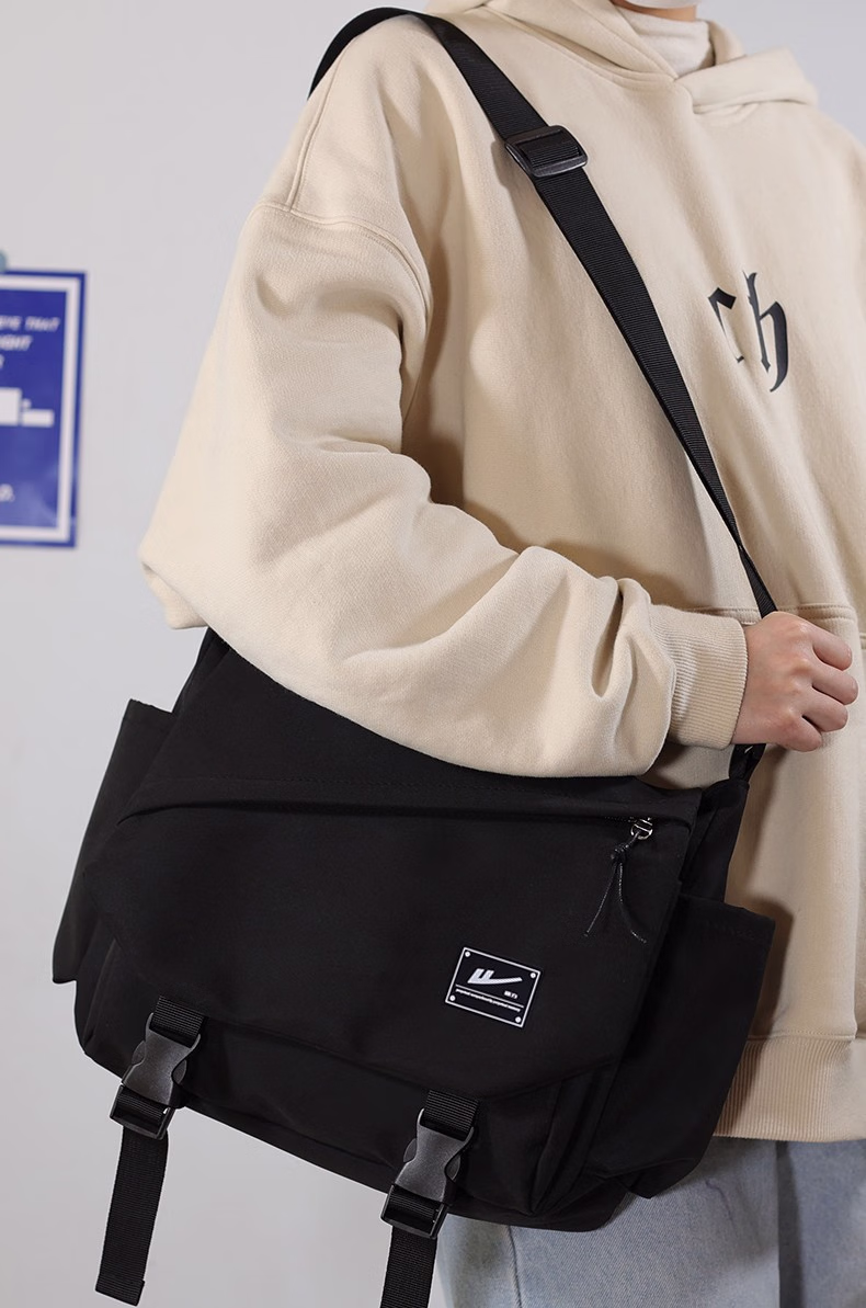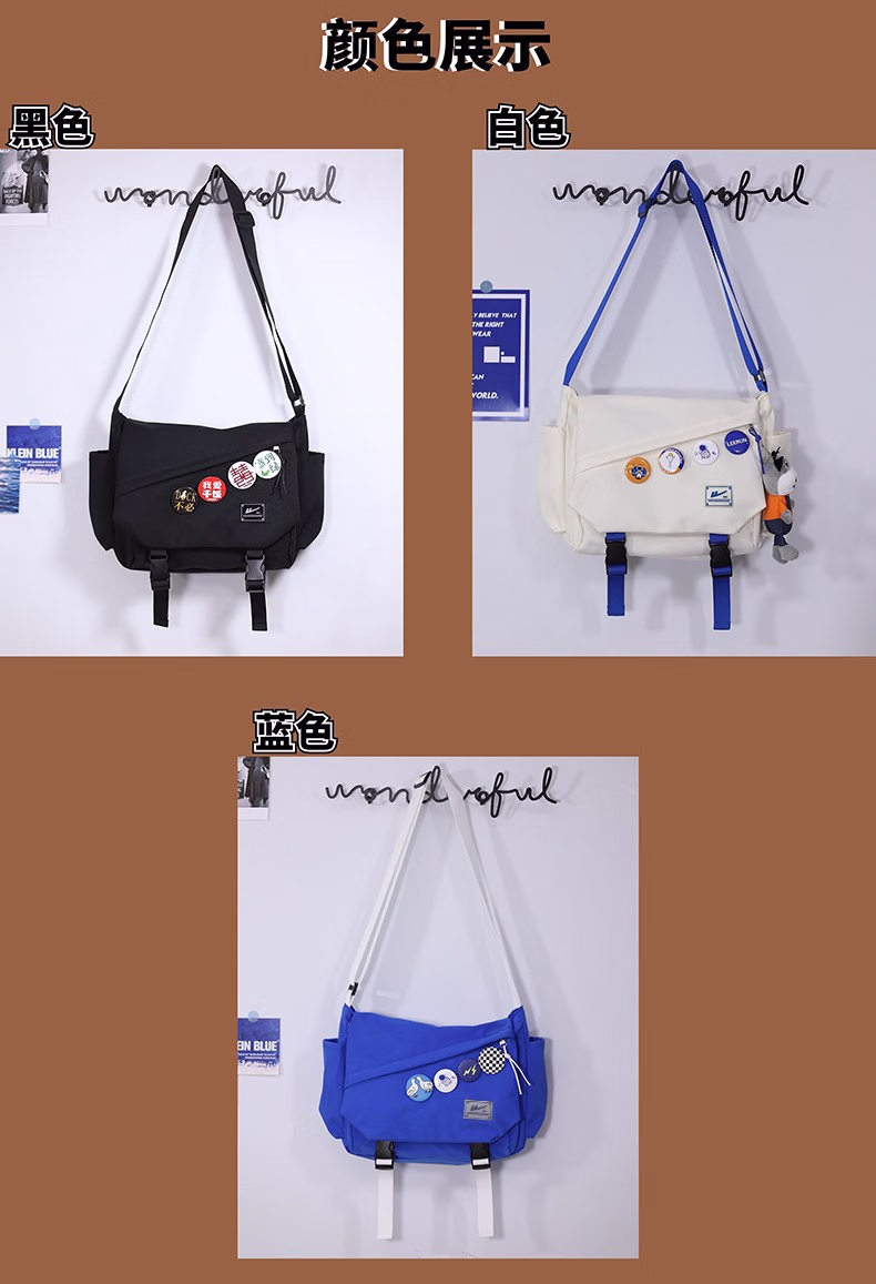 回力(Warrior)斜挎包男士挎包男女潮牌大容量单肩包学生情侣休闲运动小背包邮差 黑色【带太空人挂件】
