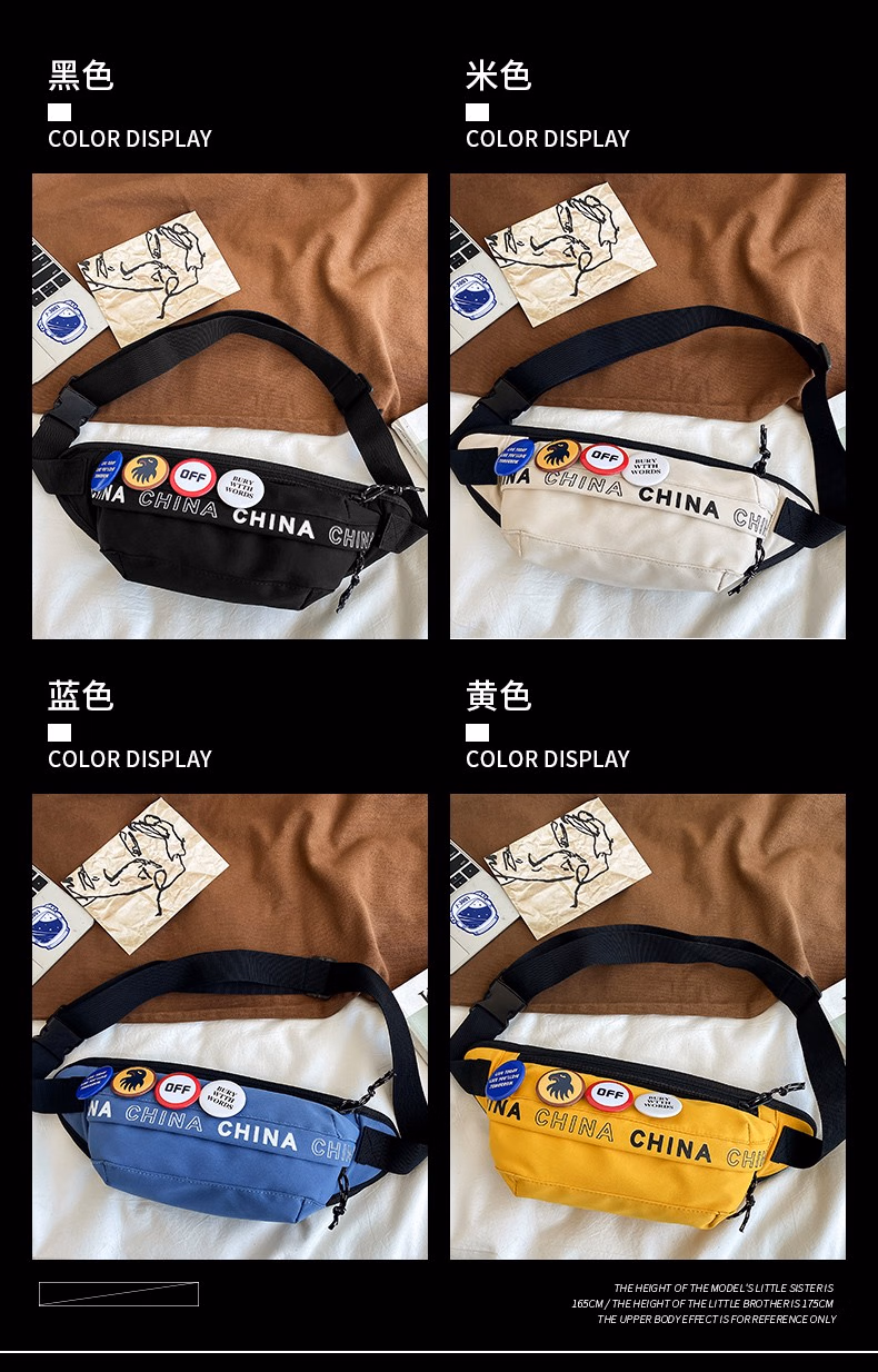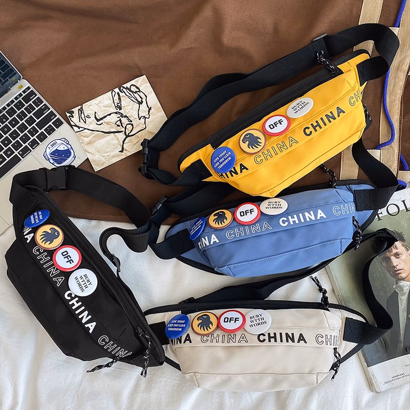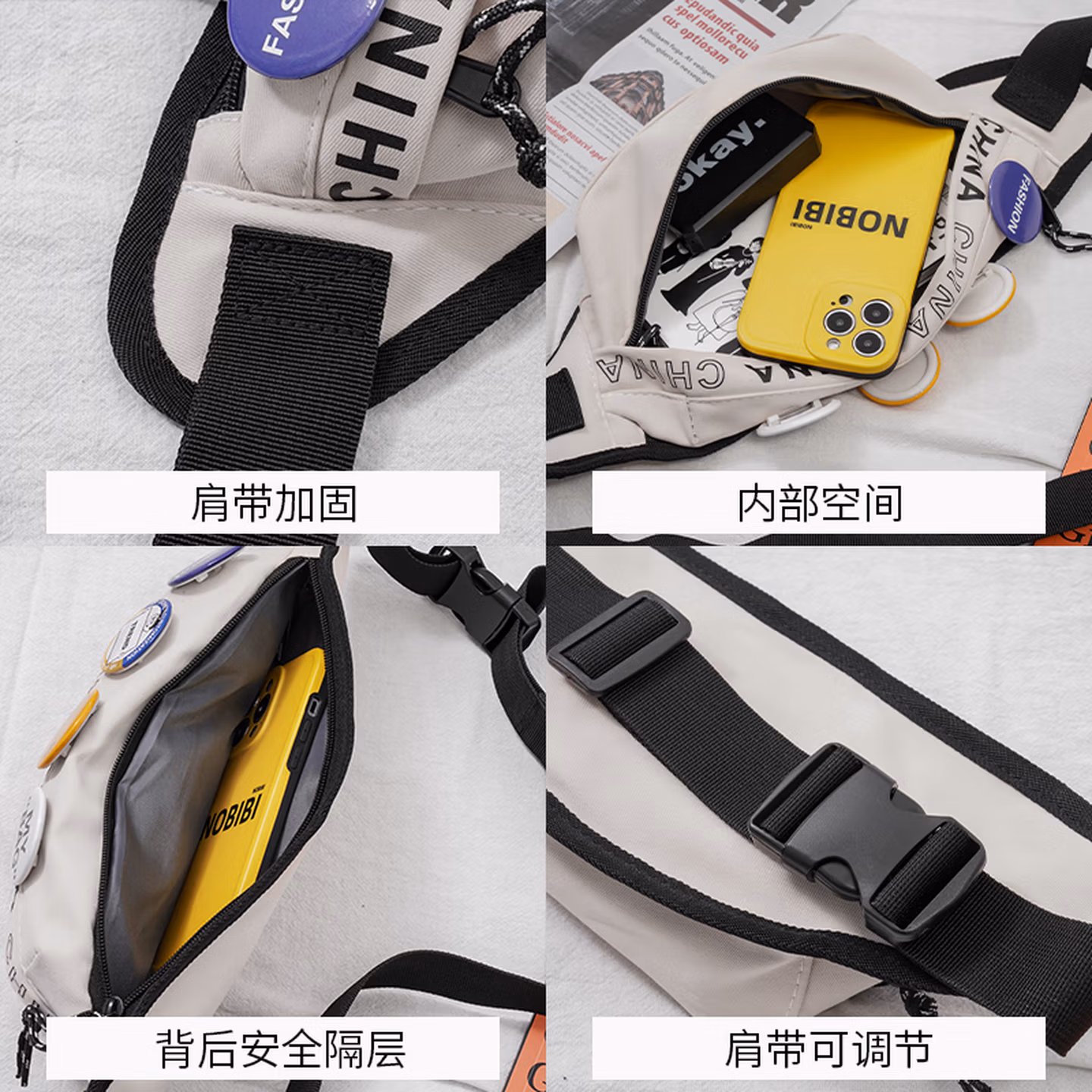 > 回力国潮胸包男休闲运动单肩包男生小背包学生潮流斜挎包男士挎包腰包 米色【随机徽章4枚】