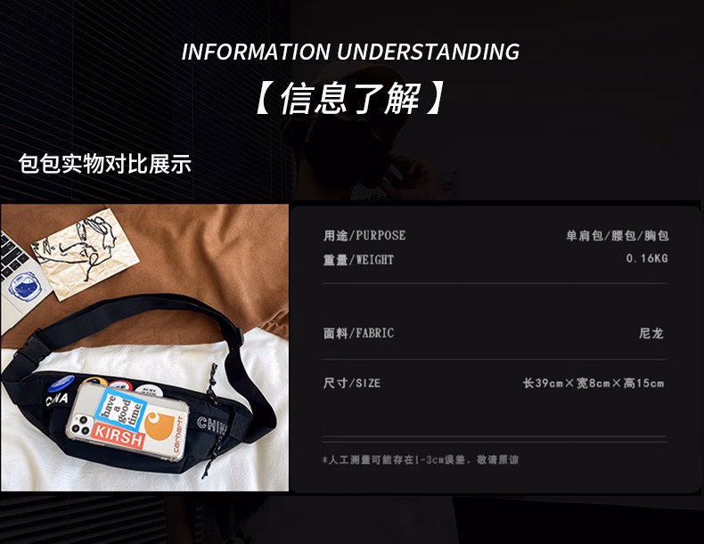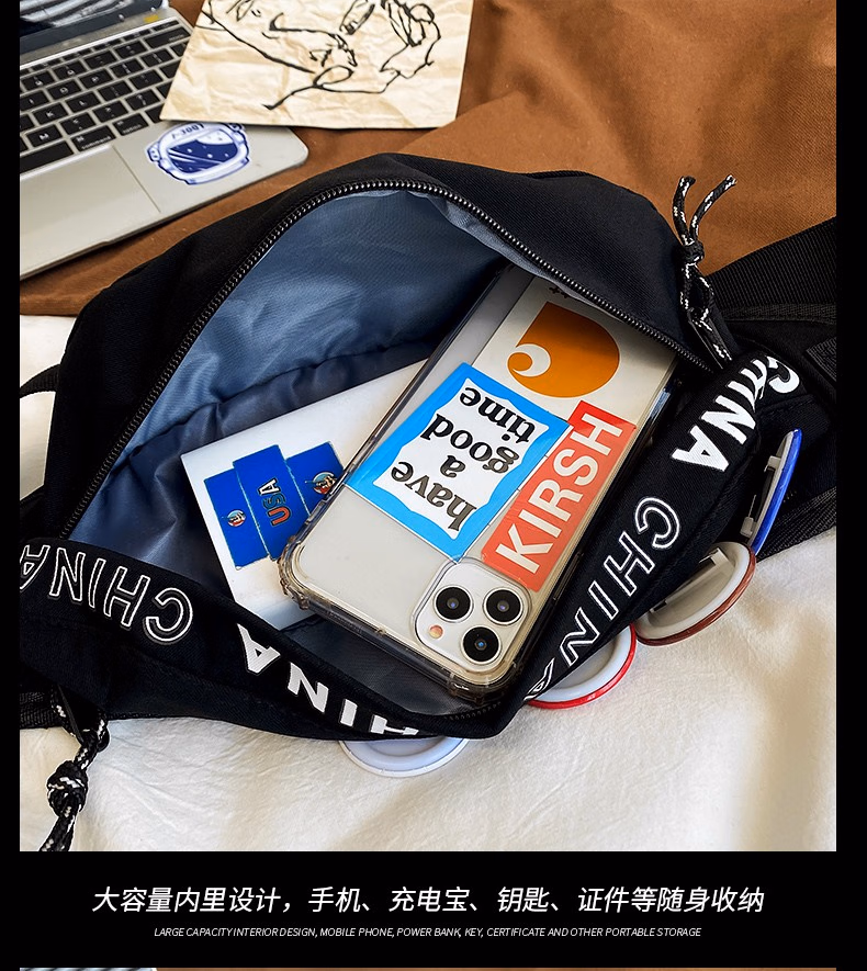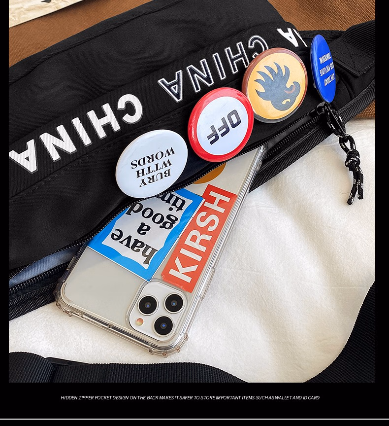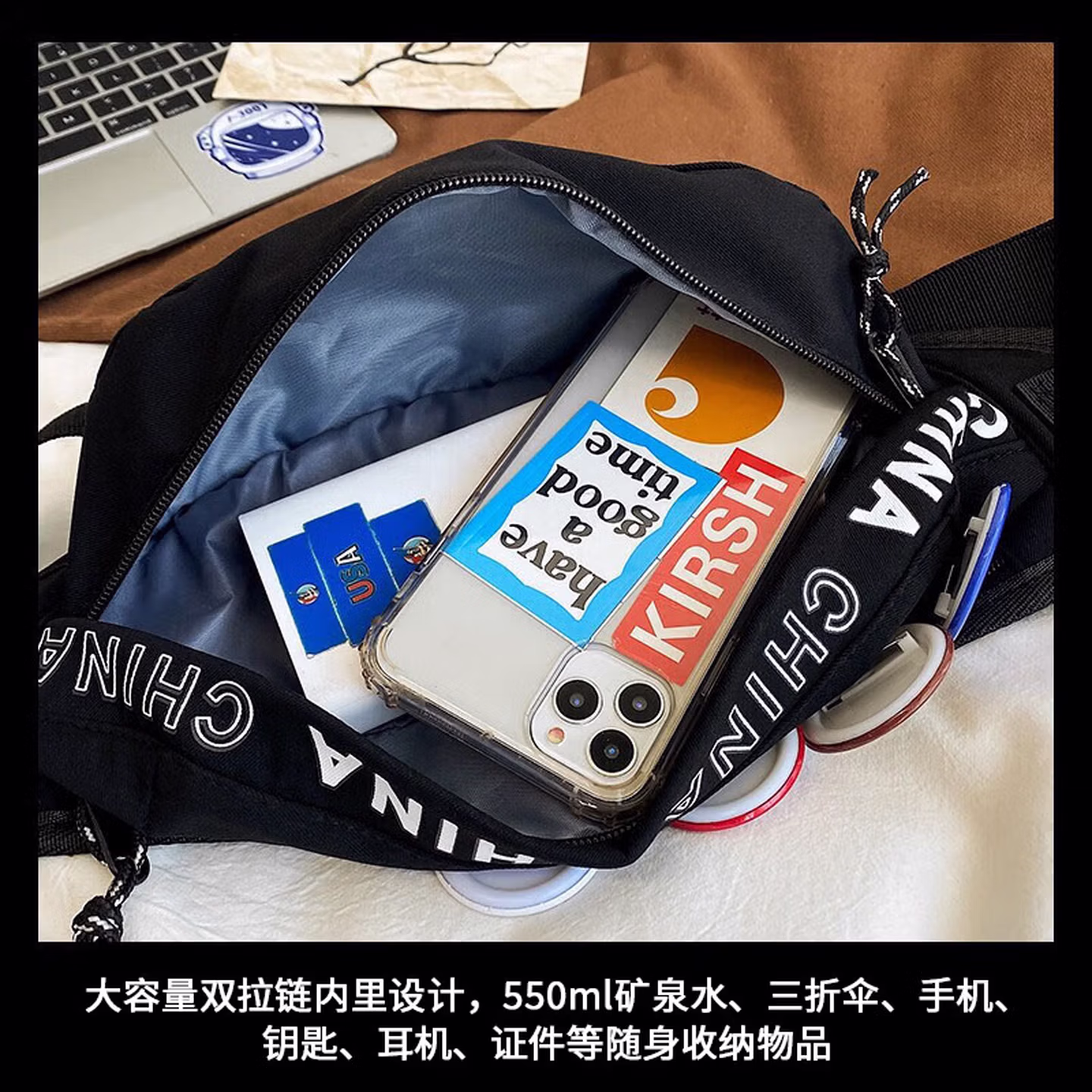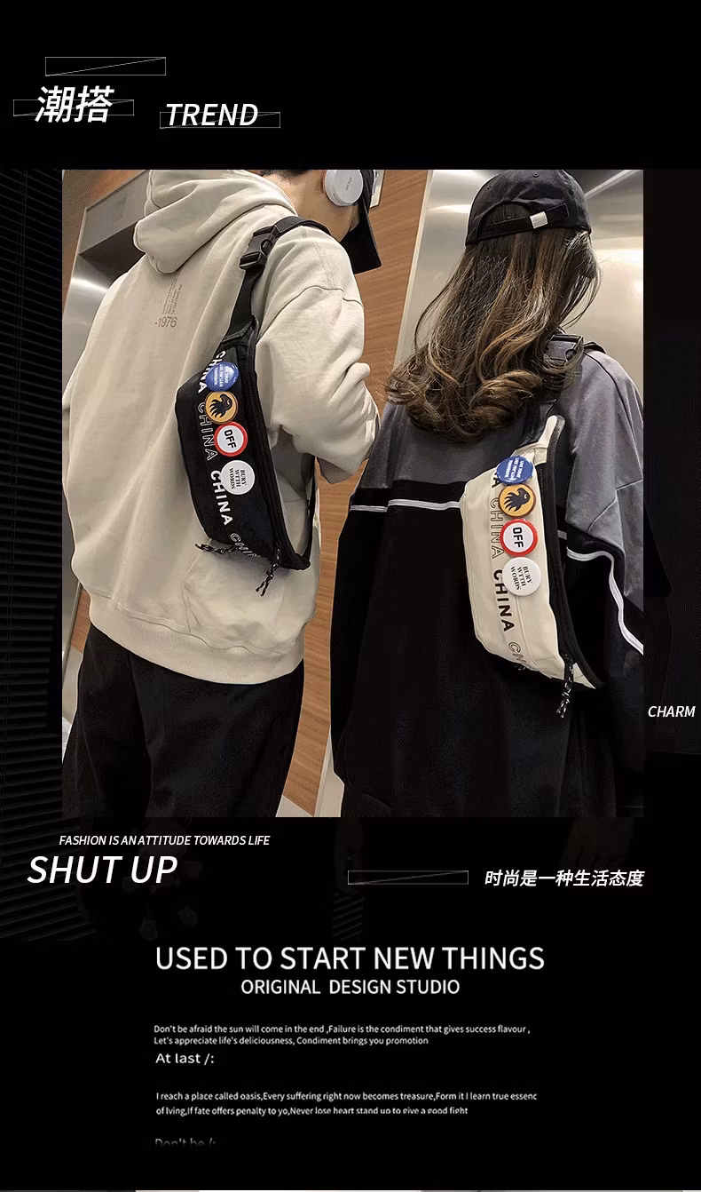 > 回力国潮胸包男休闲运动单肩包男生小背包学生潮流斜挎包男士挎包腰包 米色【随机徽章4枚】