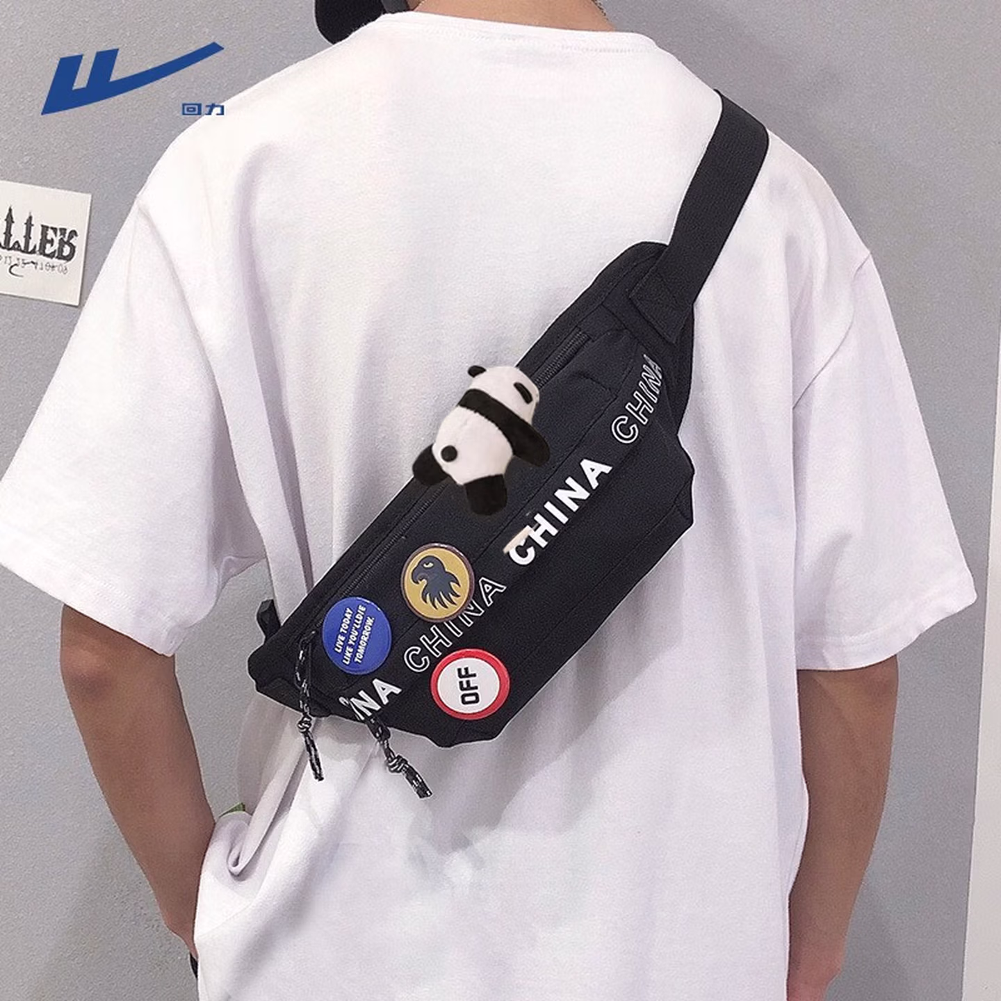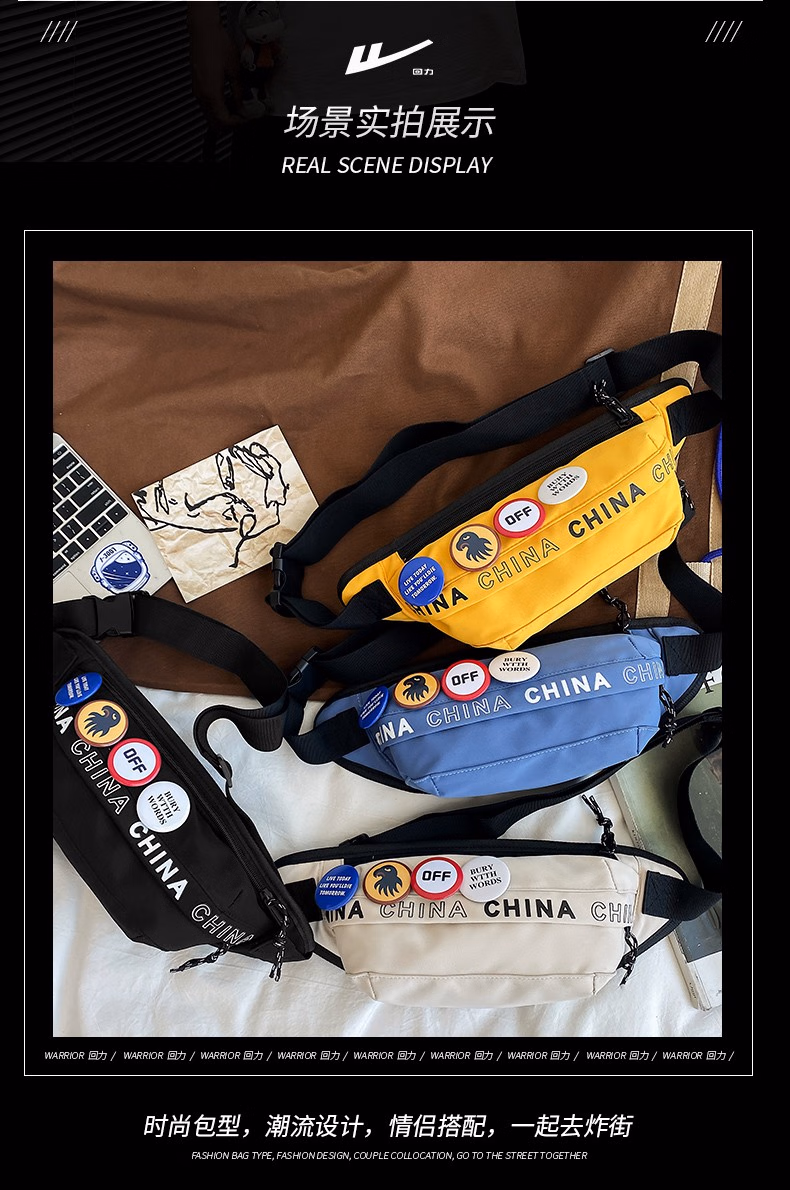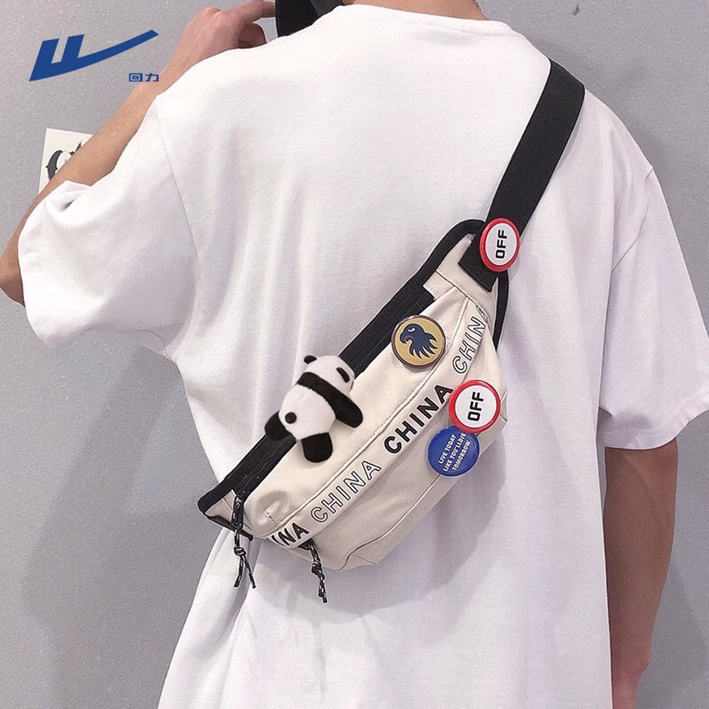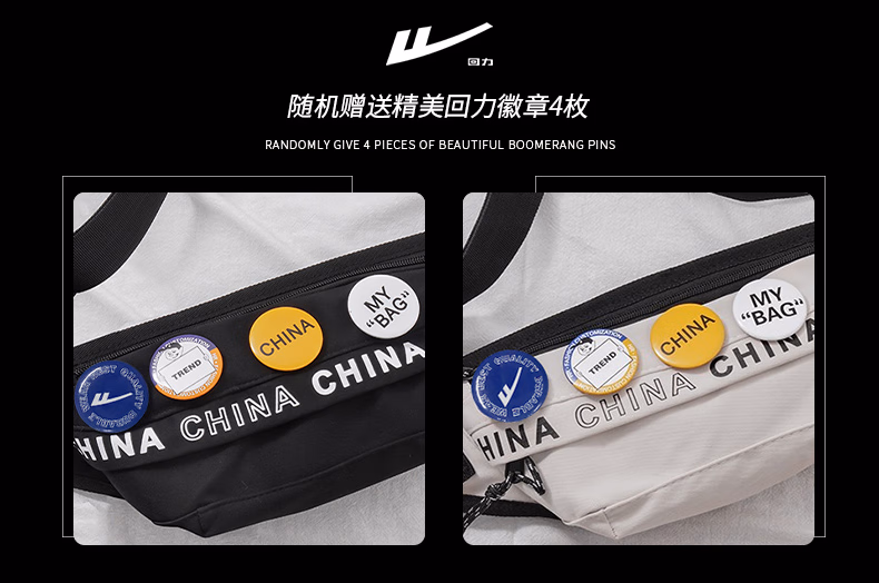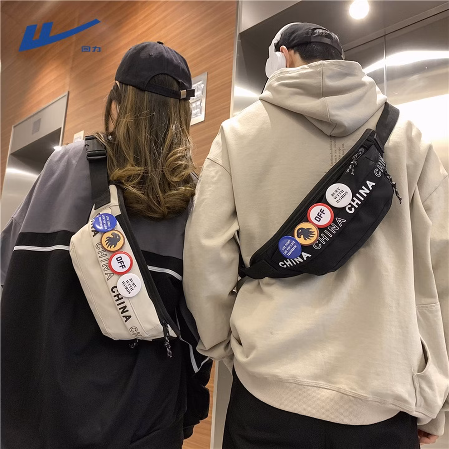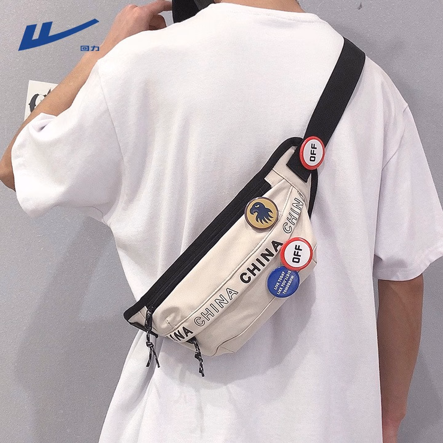 回力国潮胸包男休闲运动单肩包男生小背包学生潮流斜挎包男士挎包腰包 米色【随机徽章4枚】