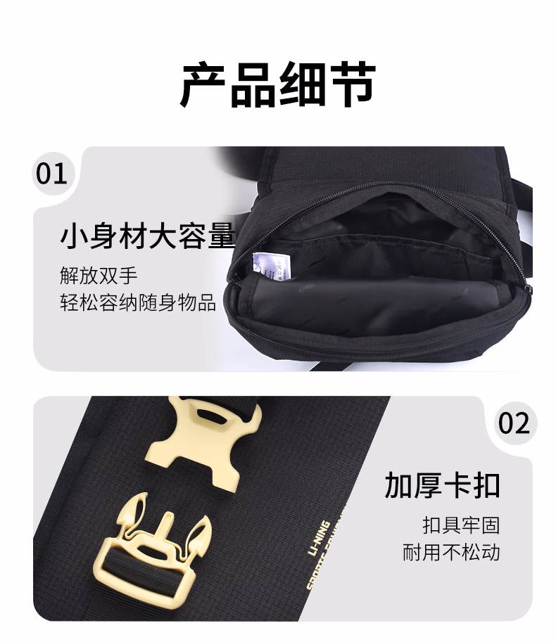 李宁腰包男运动户外专用跑步健身手机包大容量便携骑行多功能 标准黑