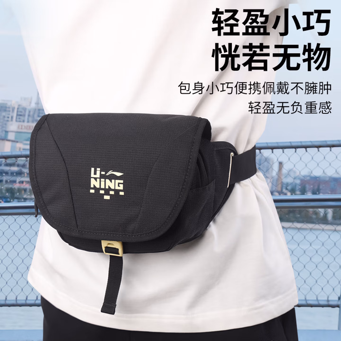 > 李宁腰包男运动户外专用跑步健身手机包大容量便携骑行多功能 标准黑