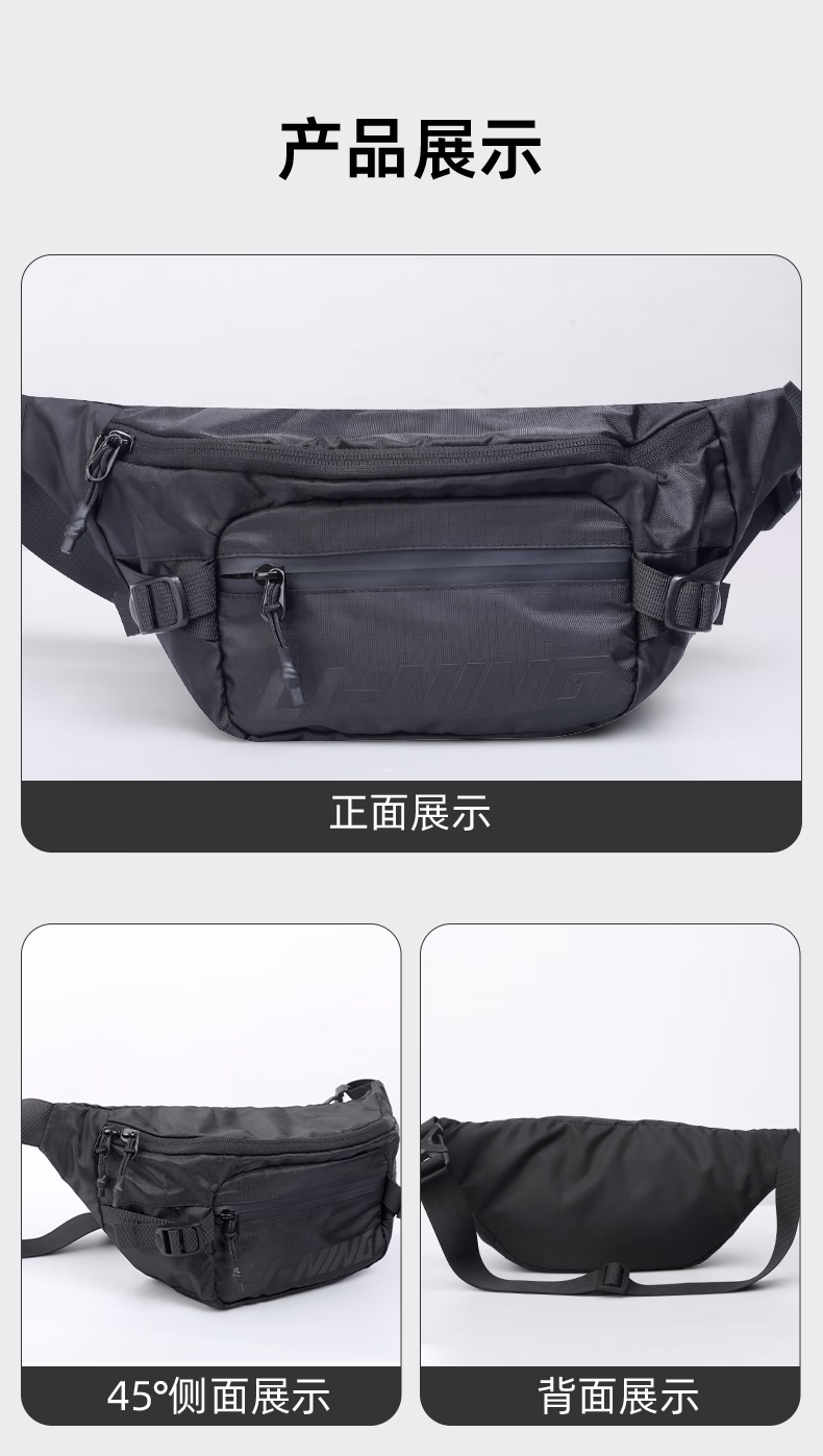 > 李宁(LI-NING)运动腰包男女款大容量便捷出行防水耐磨易清洗 黑色