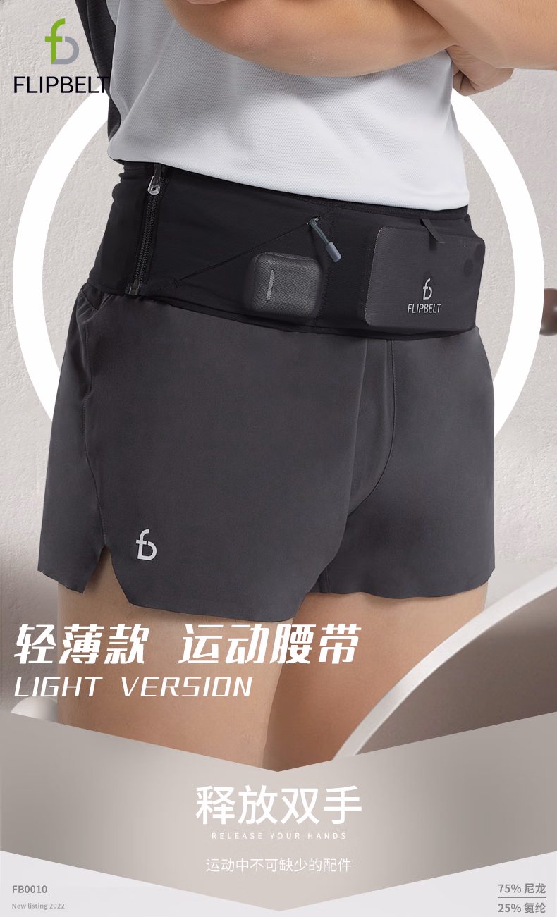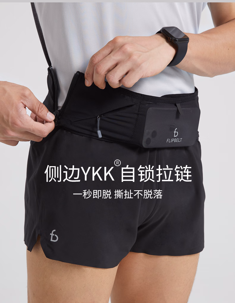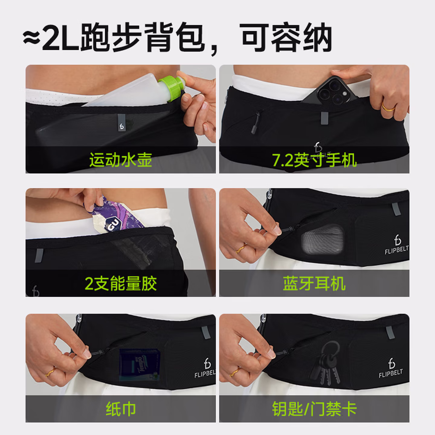 > 飞比特【轻薄款腰包】跑步男女运动健身多功能户外马拉松贴身手机包登山 经典黑 M(80-89cm)