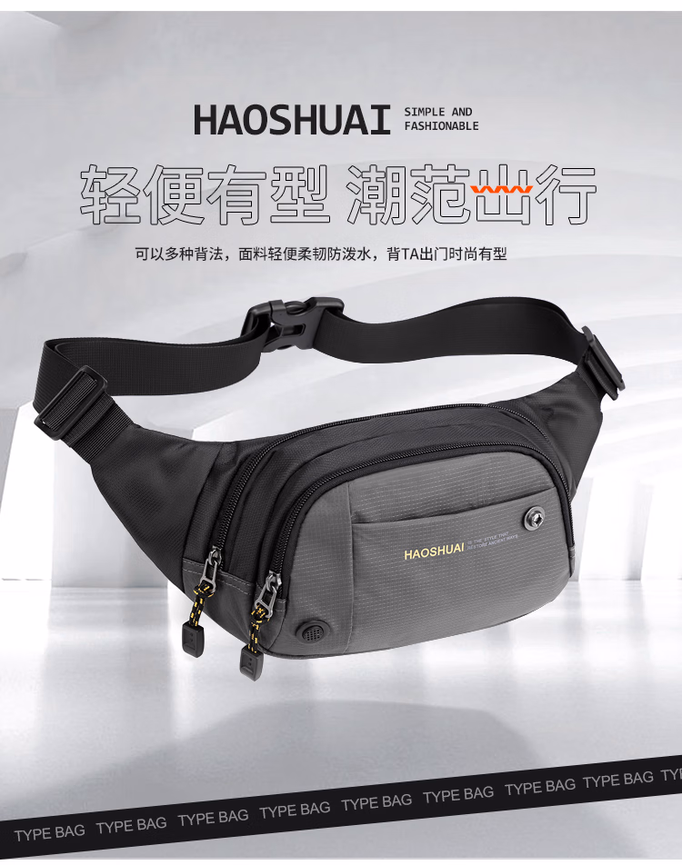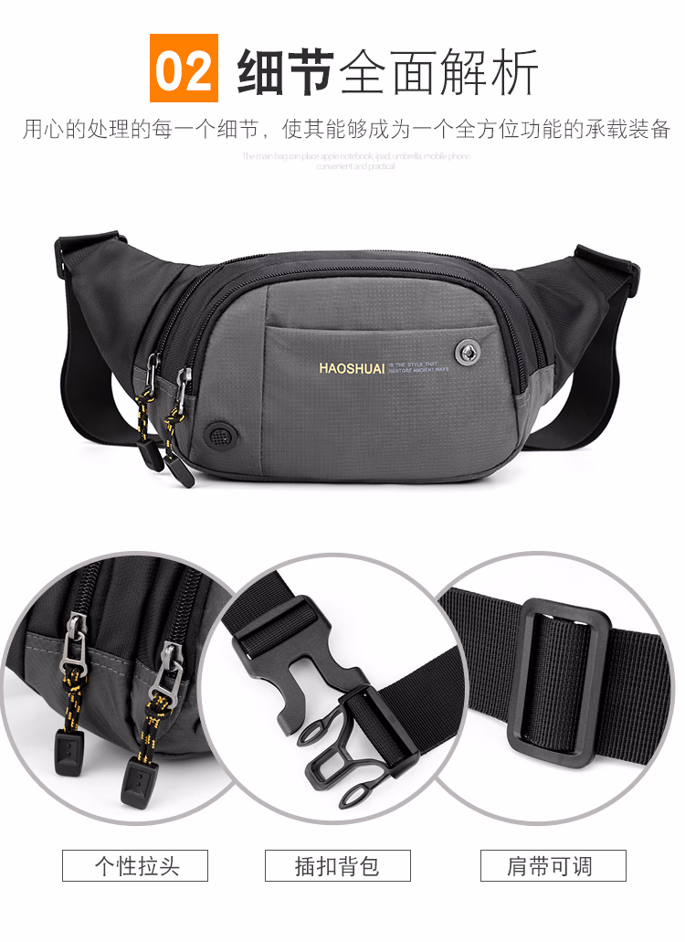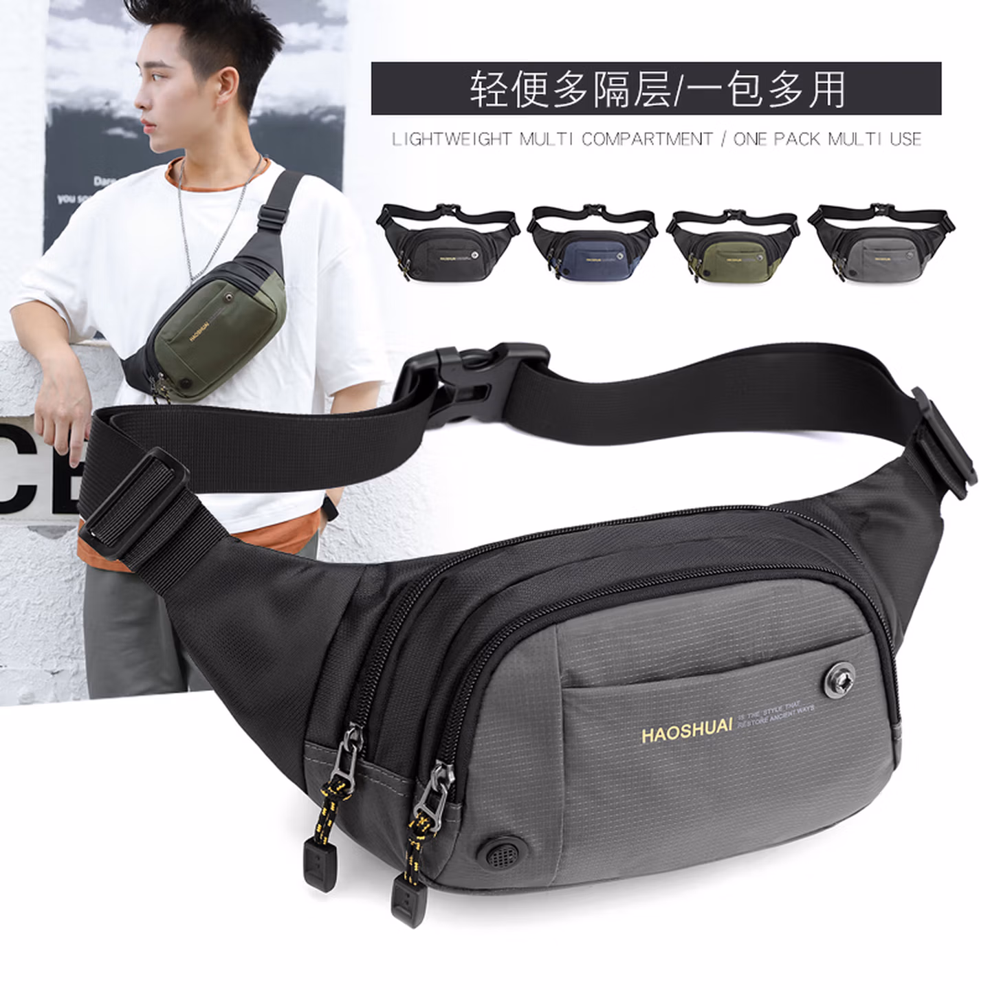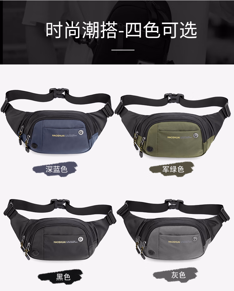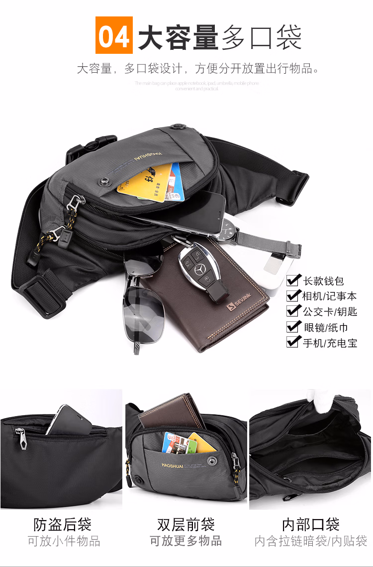 > GPHF日本多功能腰包胸包大容量手机男女收钱收银生意包防水户外帆布包 升级款-黑色