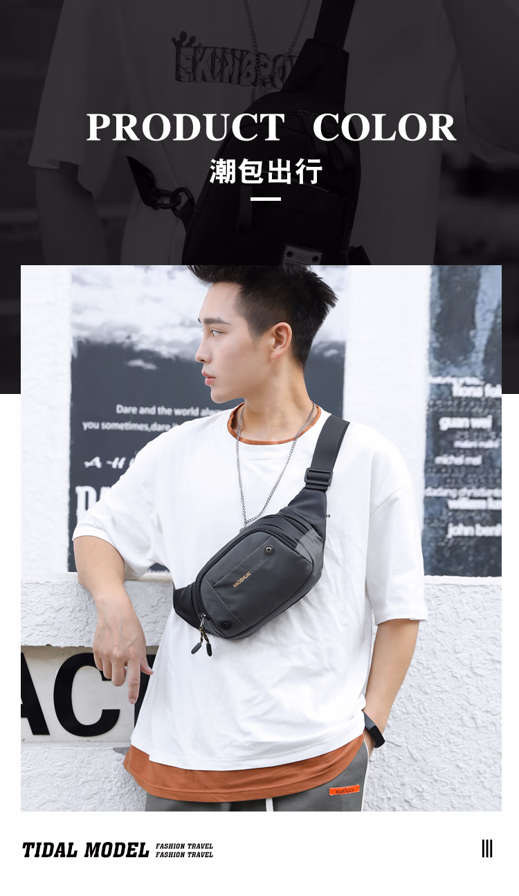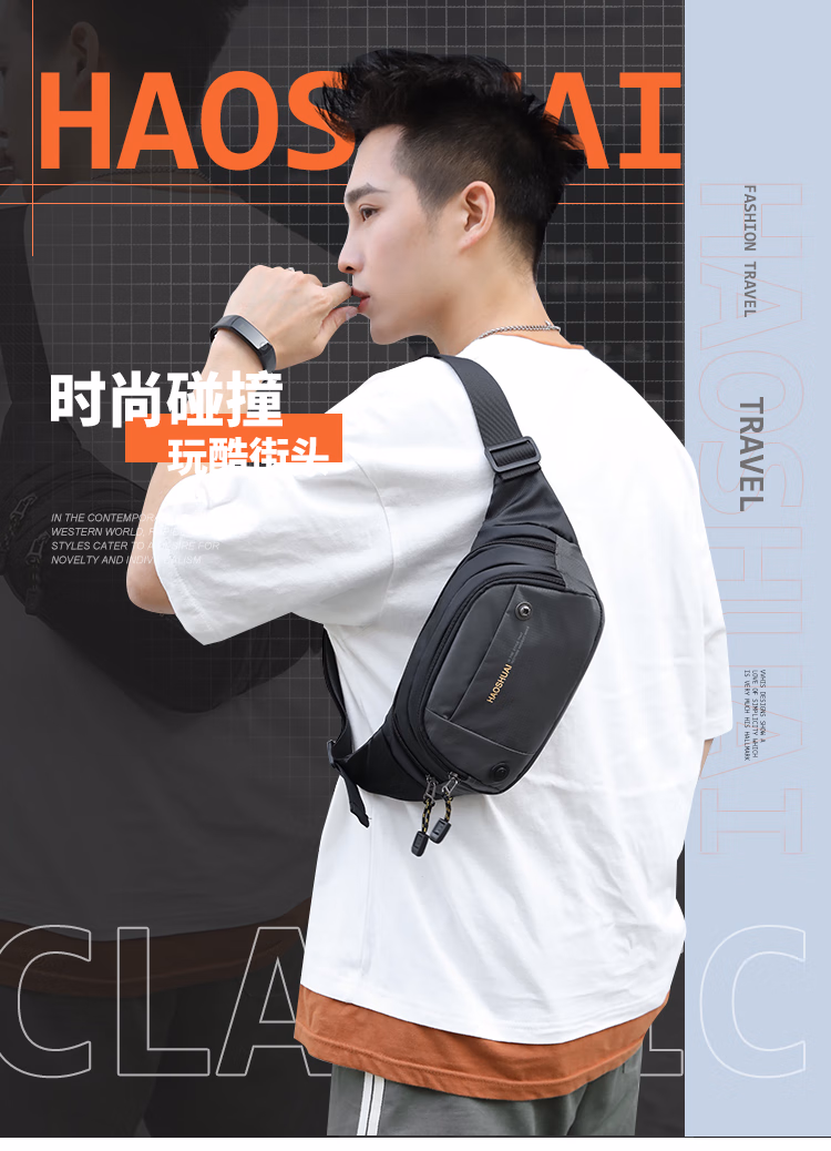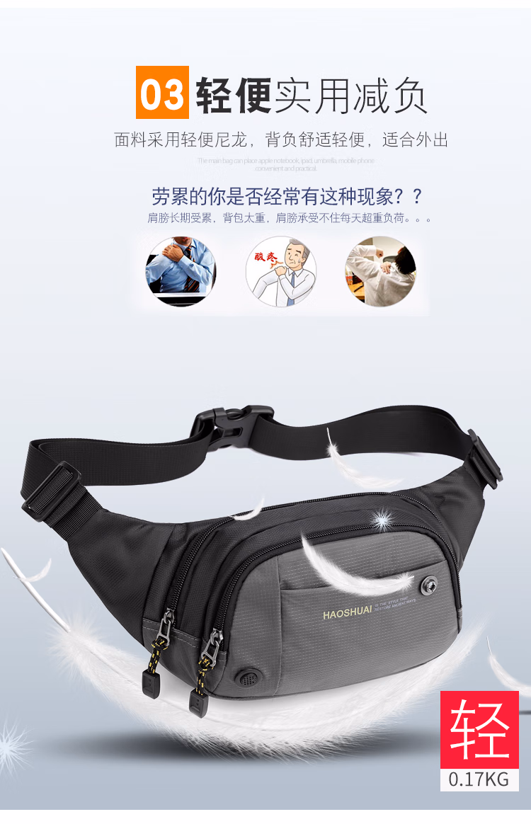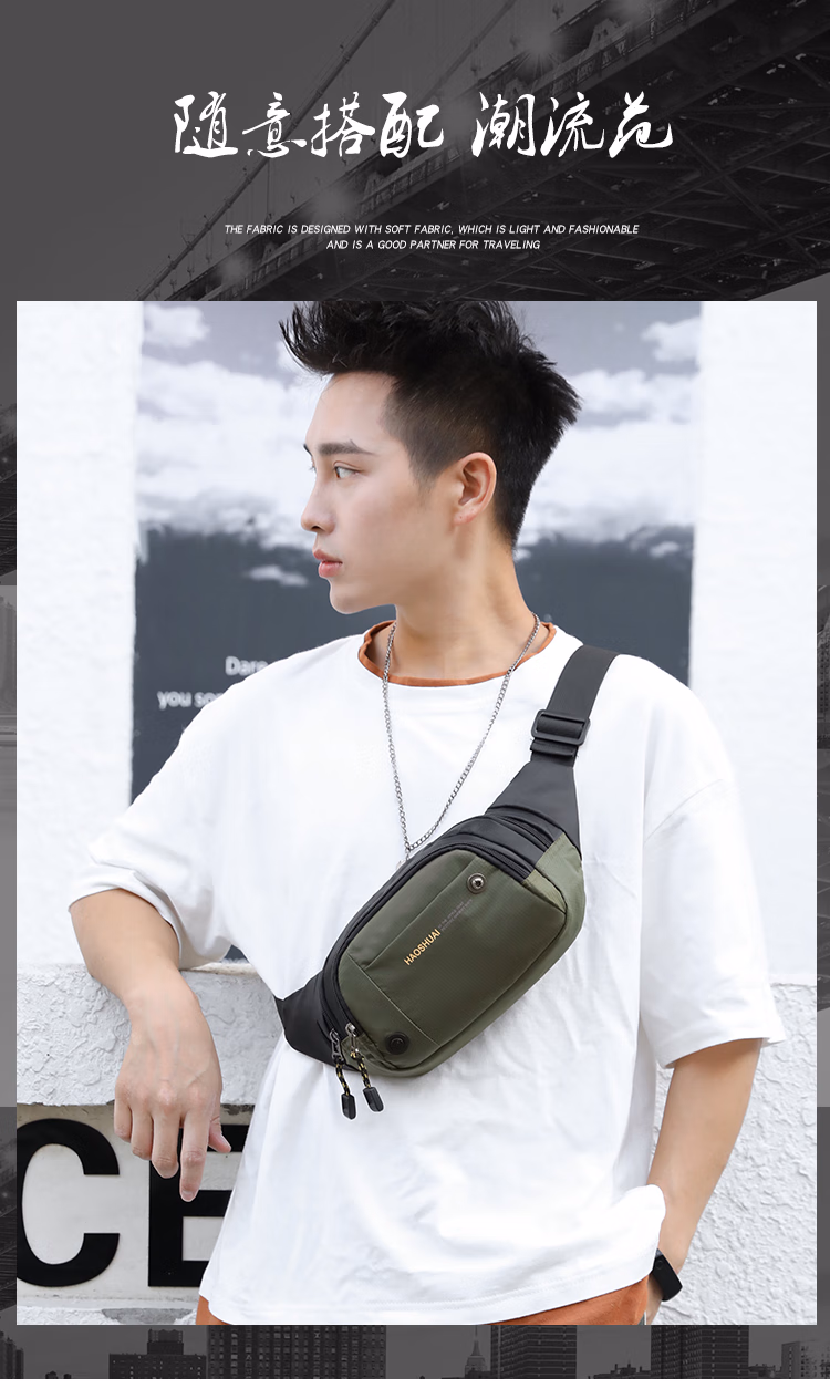> GPHF日本多功能腰包胸包大容量手机男女收钱收银生意包防水户外帆布包 升级款-黑色