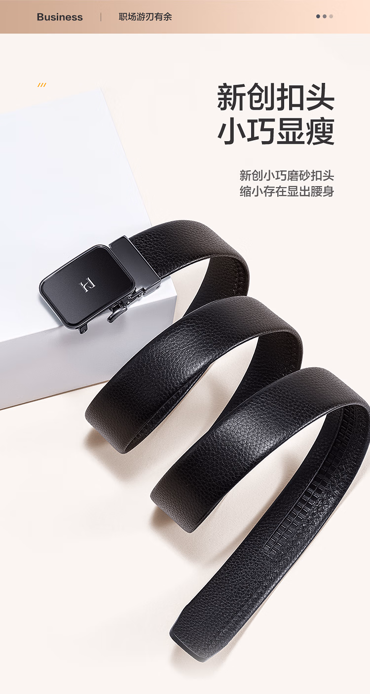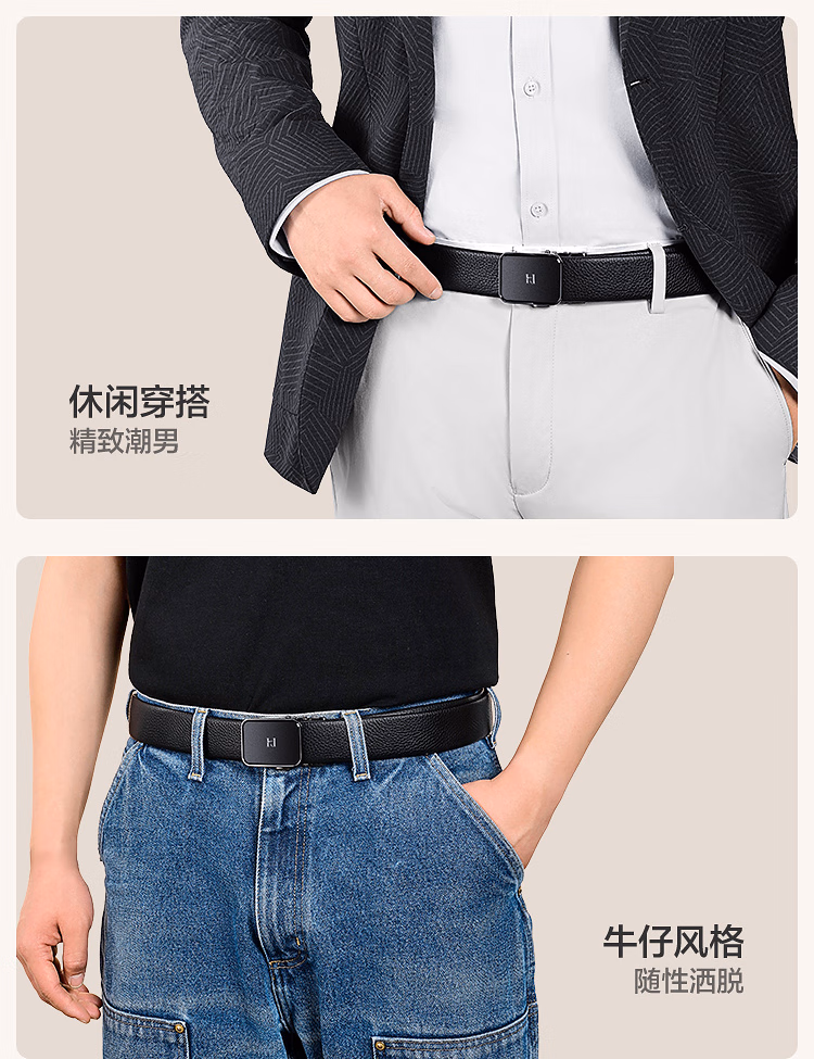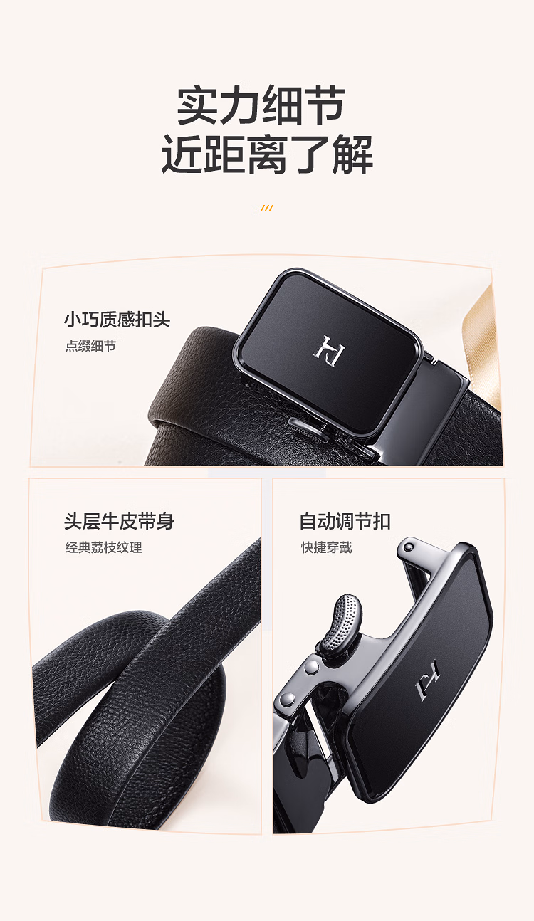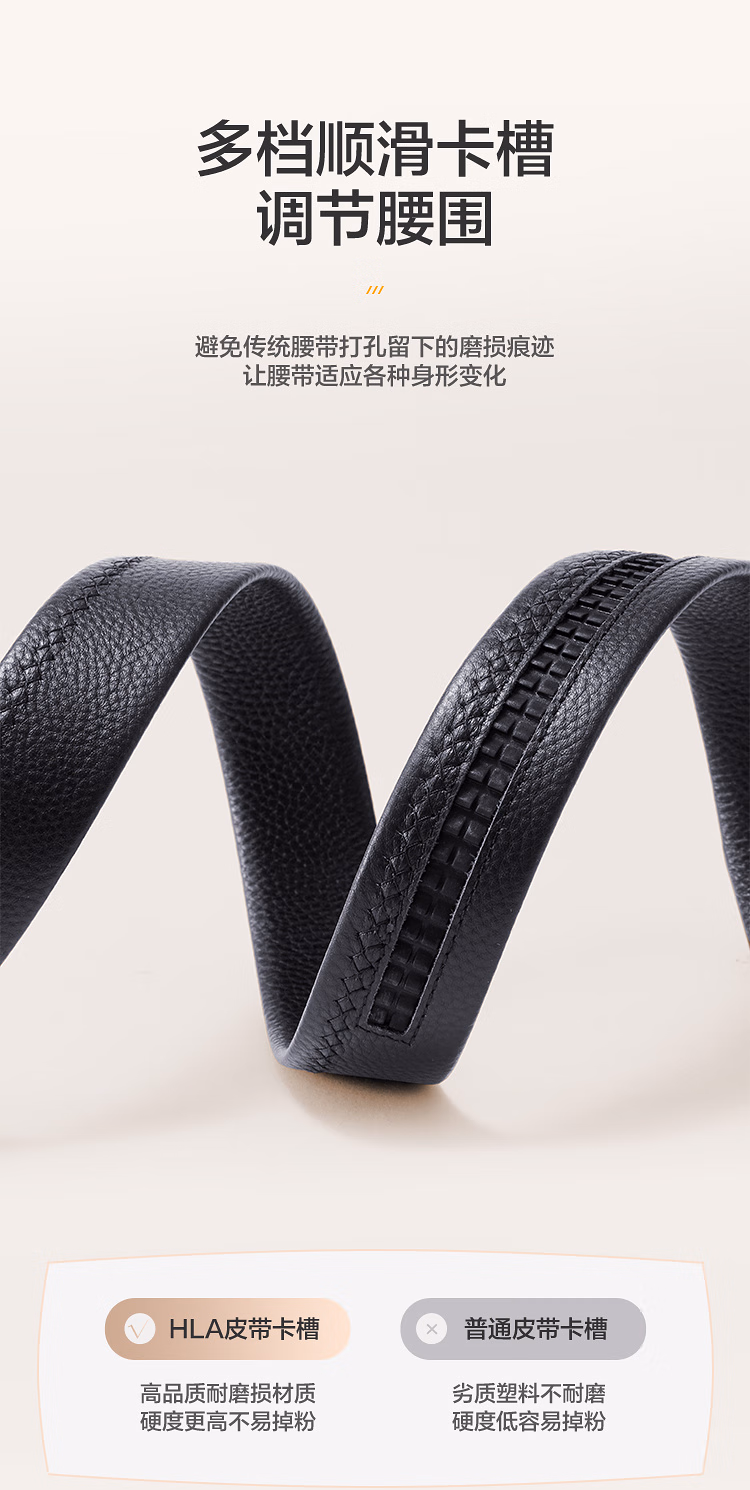 > HLA海澜之家皮带真皮自动扣头层牛皮男休闲腰带送男友HXAYDM0AEXM017 BB黑色 125cm