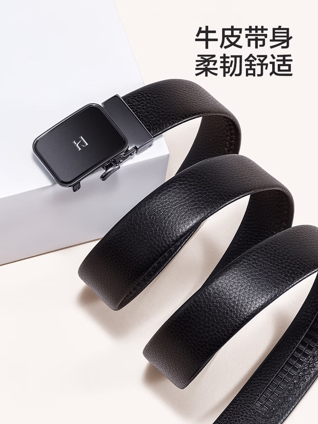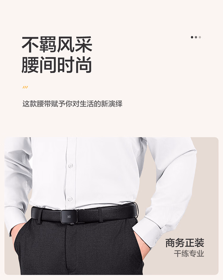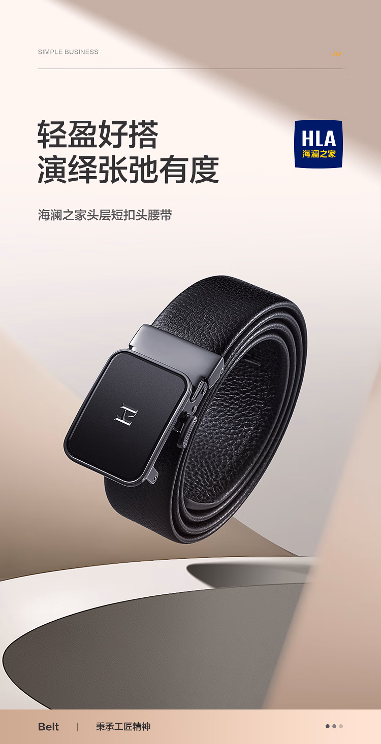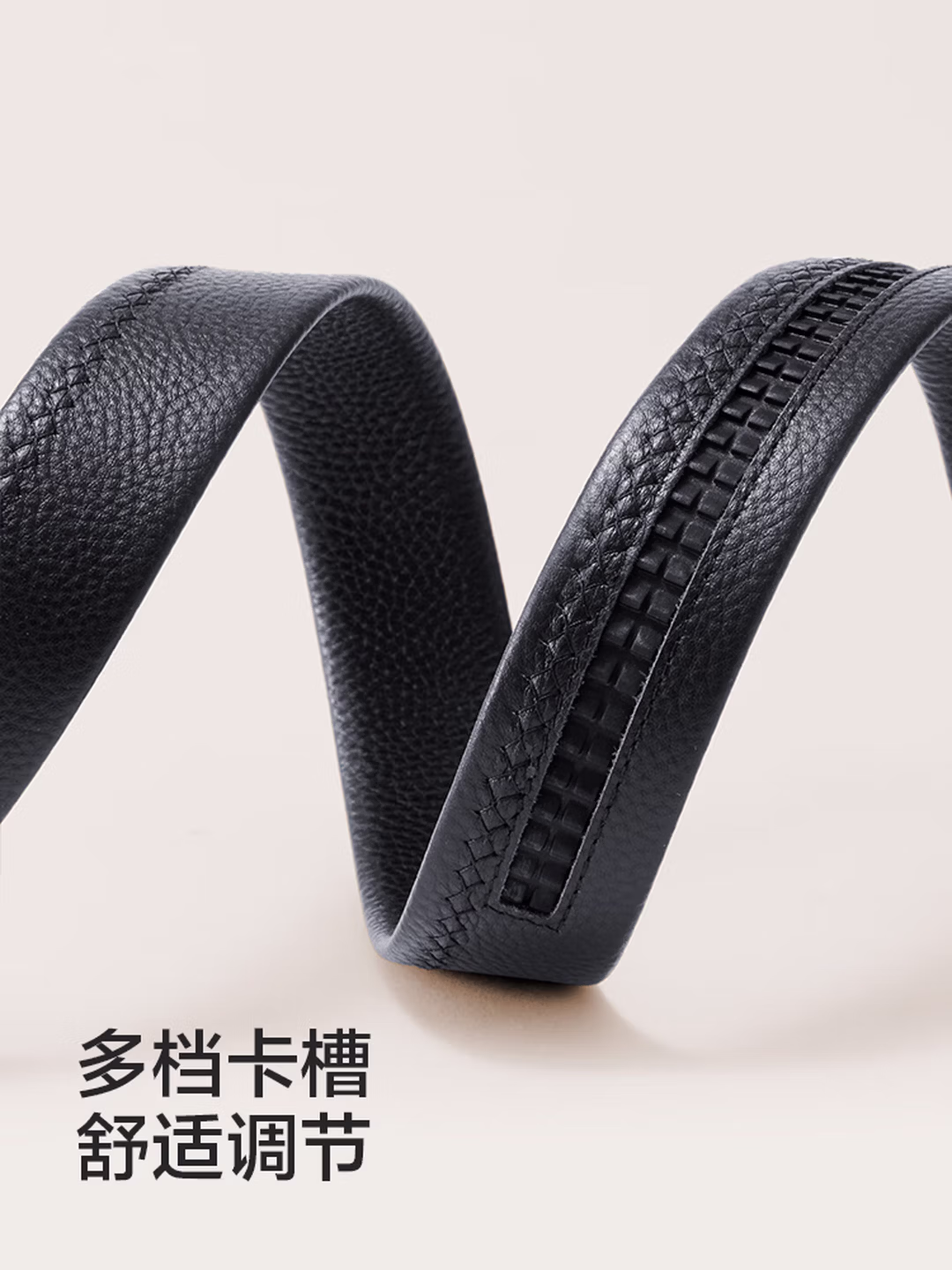 > HLA海澜之家皮带真皮自动扣头层牛皮男休闲腰带送男友HXAYDM0AEXM017 BB黑色 125cm