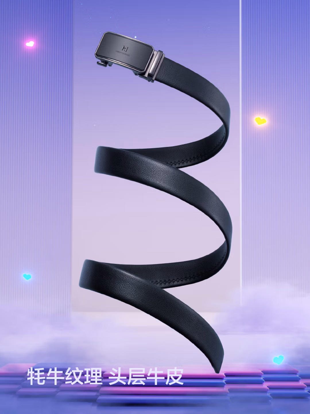 海澜之家(HLA)自动扣皮带男士头层牛皮腰带真皮裤带礼物装送男友HXAYDM0AEXM125 BB黑色 125cm