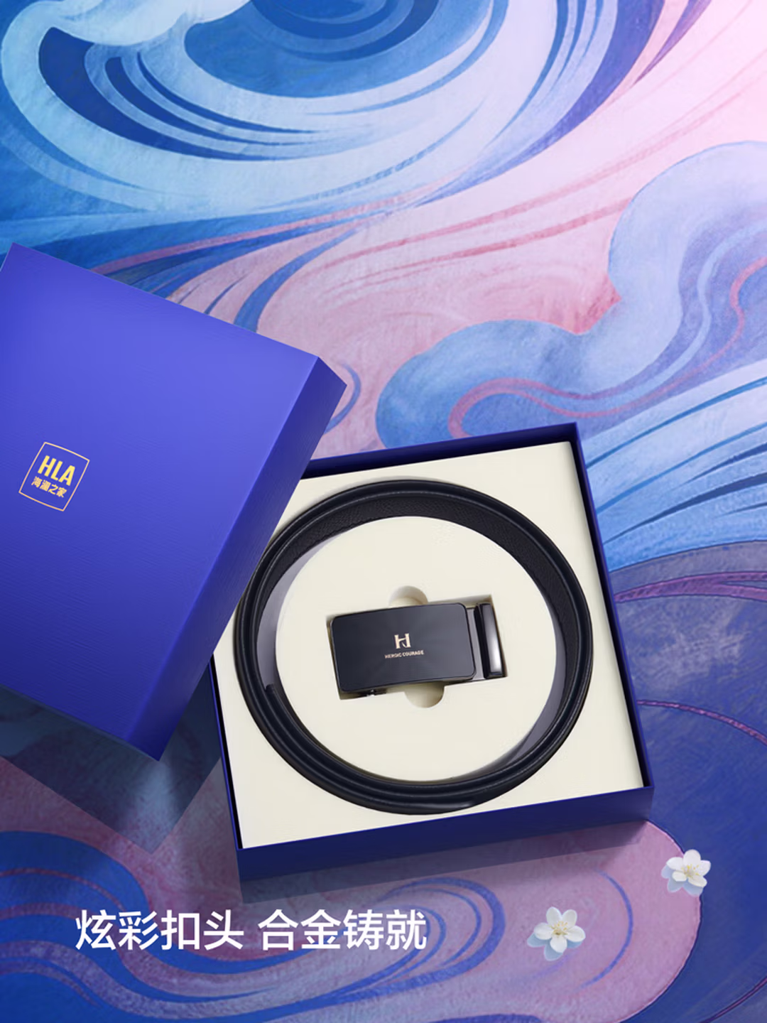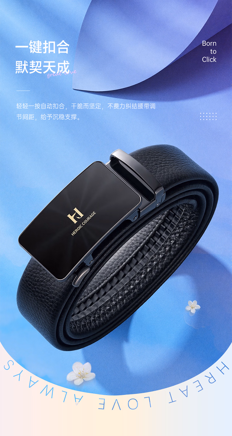 > 海澜之家(HLA)男士皮带头层牛皮腰带休闲真皮裤带新年礼物礼盒装HXAYDM0AEXM011 EE黑色 115cm