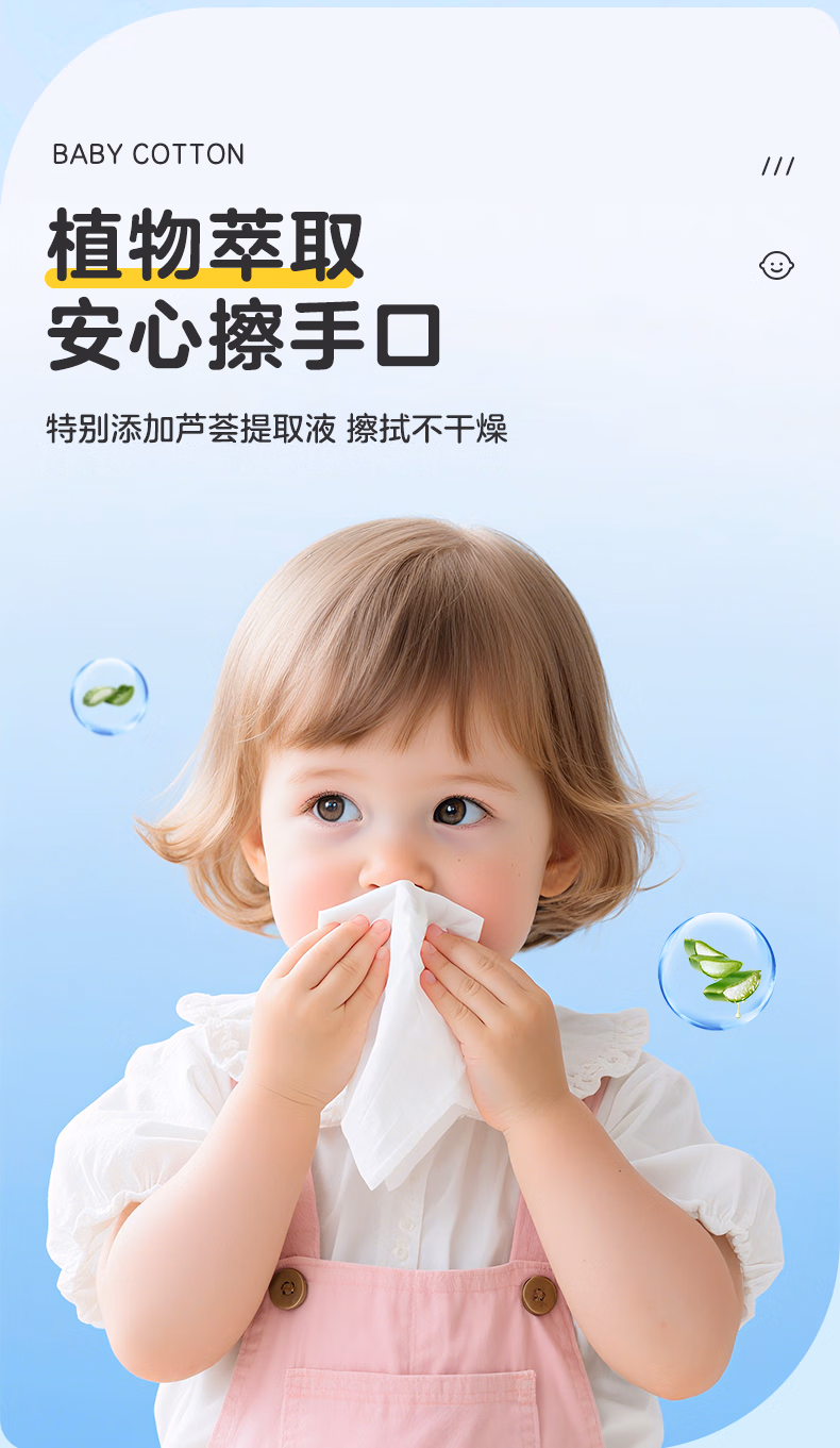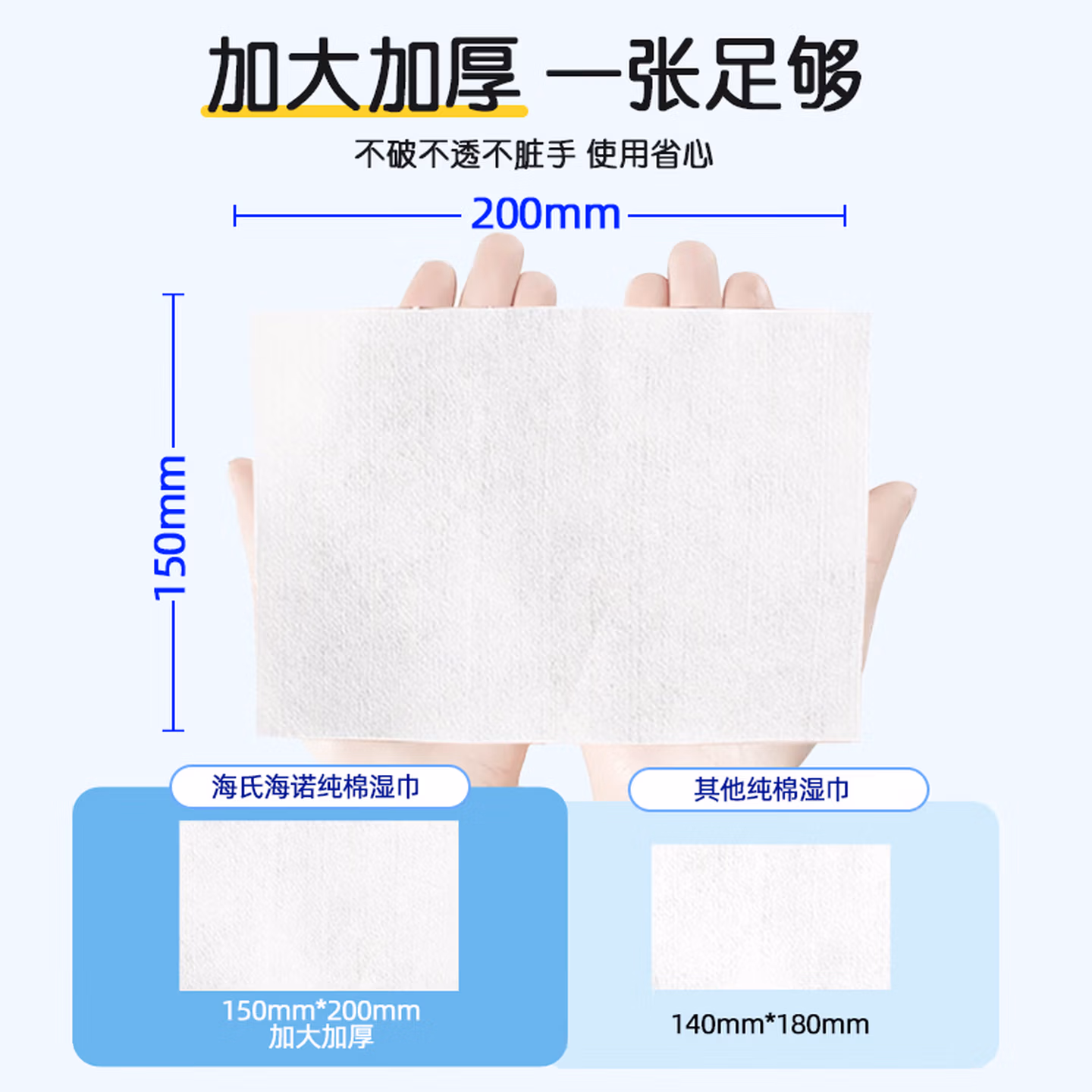 > 海氏海诺全棉湿巾婴儿手口湿巾湿纸巾宝宝专用棉柔巾不含酒精大包80抽*3包