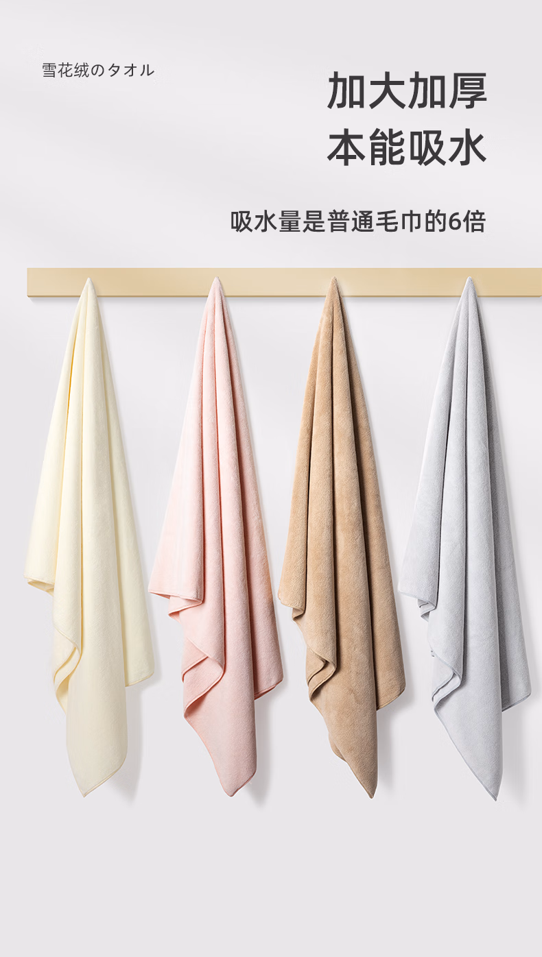 GGT日本雪花绒浴巾家用洗澡吸水速干大浴巾高档不掉毛80*160 樱若
