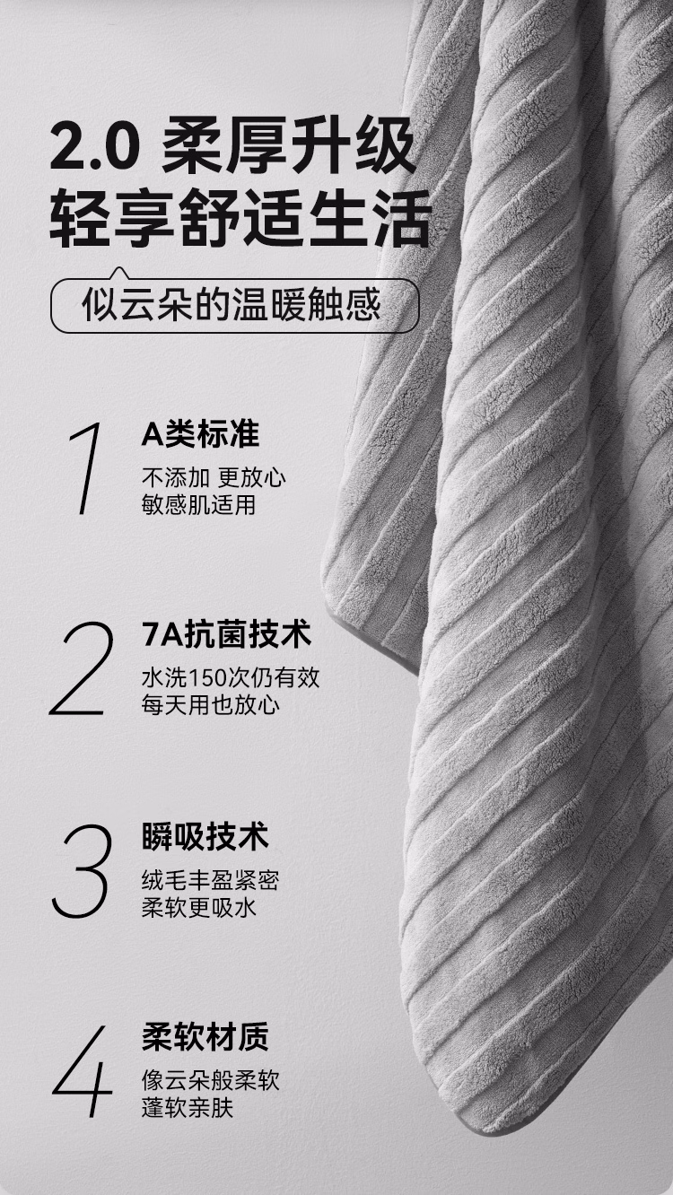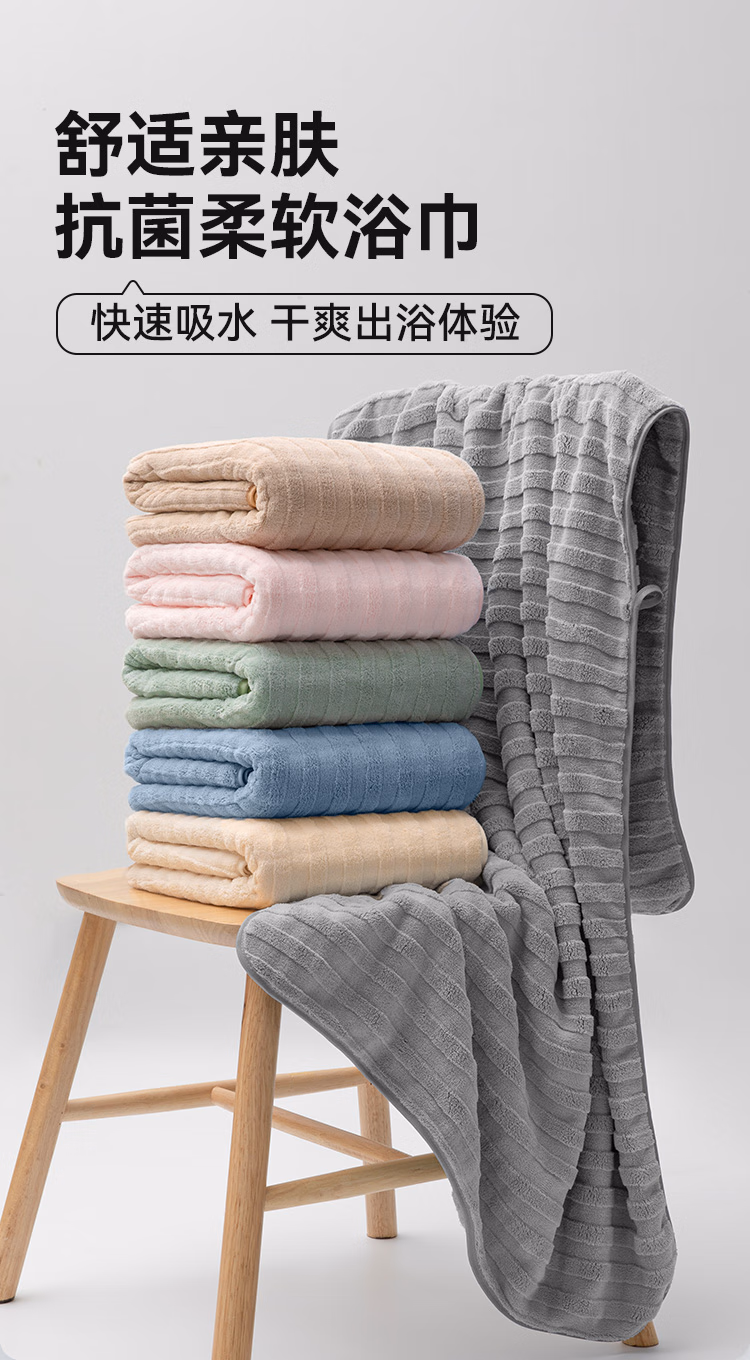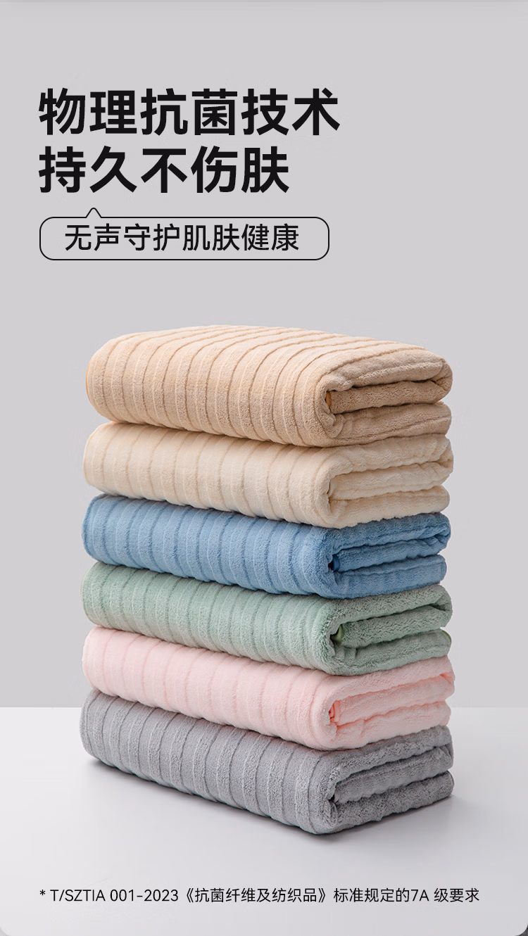 > 三利浴巾7A抗菌亲肤柔软吸水速干A类不易掉毛男士女通用大浴巾咖色