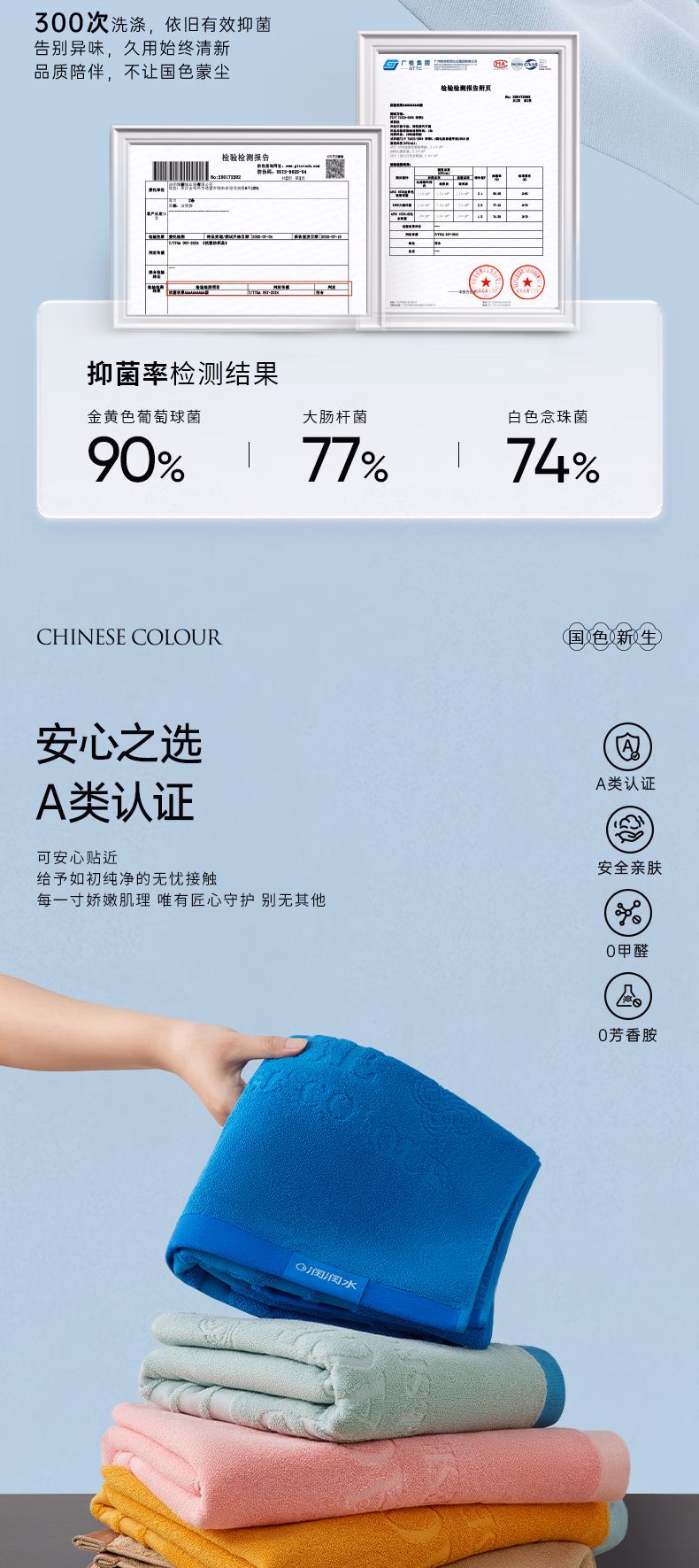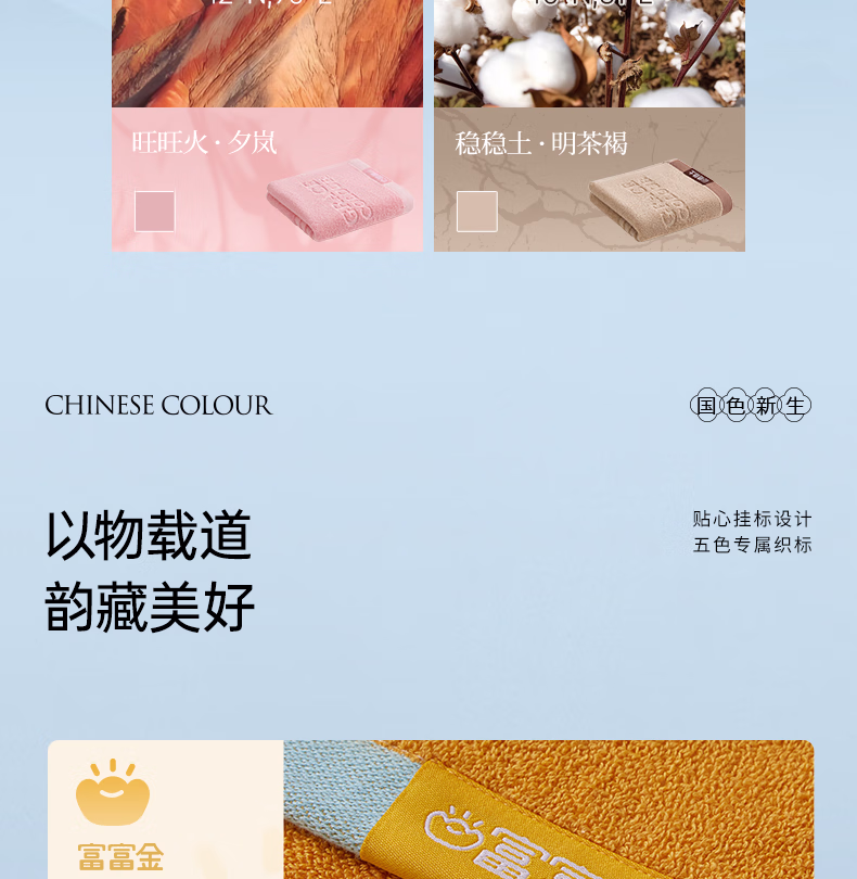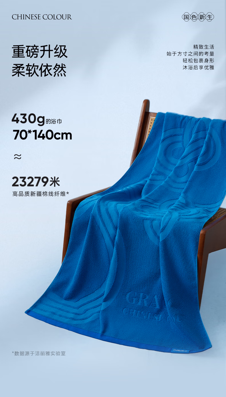 洁丽雅(Grace)国色祥韵高能五行浴巾10A抗菌纯棉吸水亲肤全棉成人洗澡毛巾 明黄