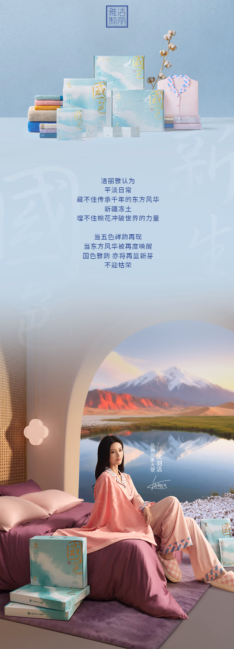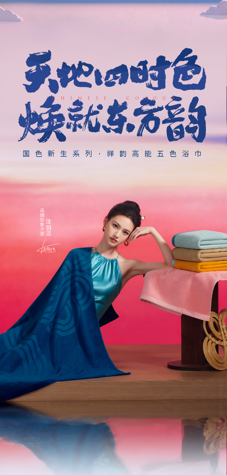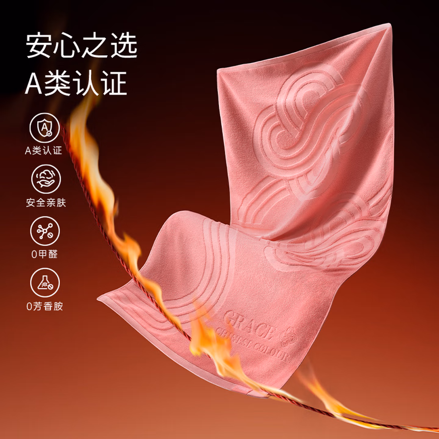 洁丽雅(Grace)国色祥韵高能五行浴巾10A抗菌纯棉吸水亲肤全棉成人洗澡毛巾 明黄