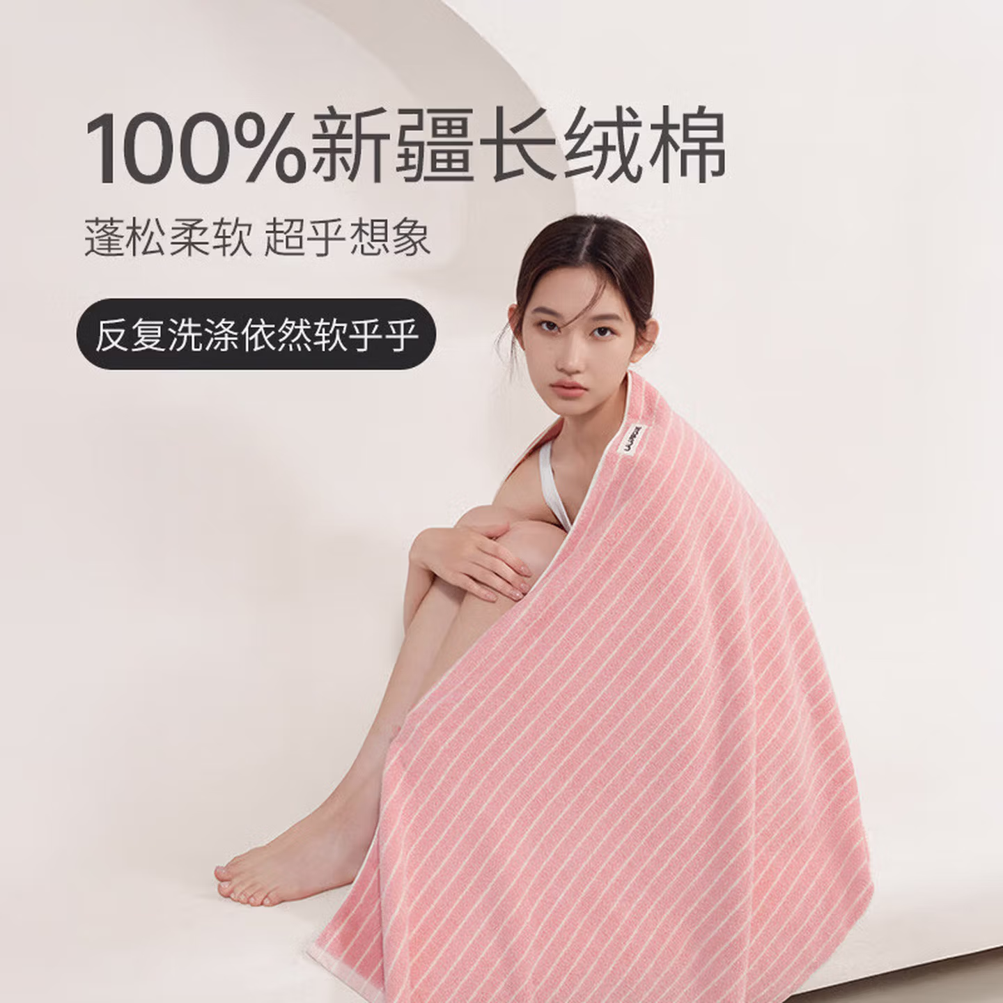 LALAPERCARE618g纯棉云柔条纹浴巾加大加厚超吸水7A抗菌浴巾粉白成人浴室毛巾