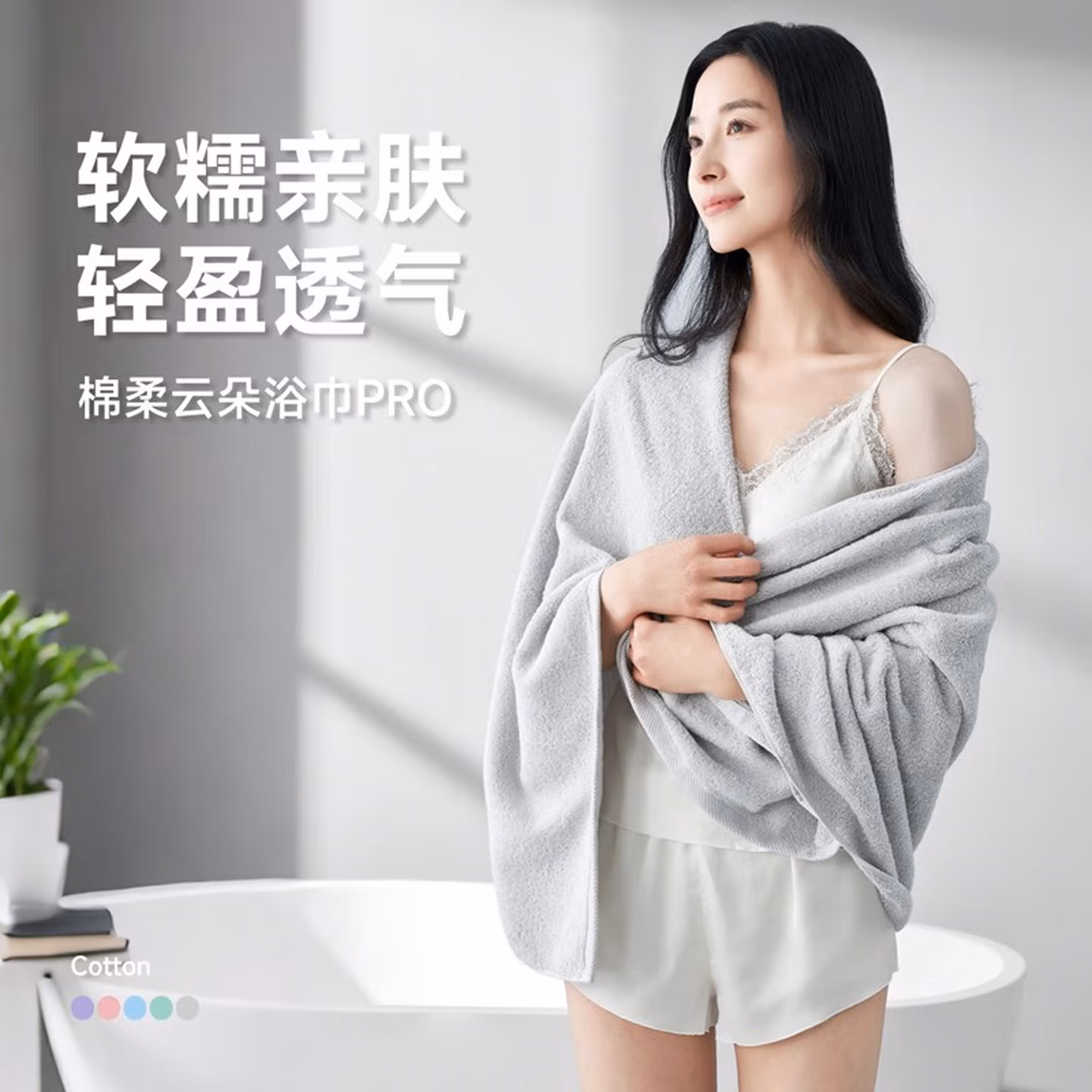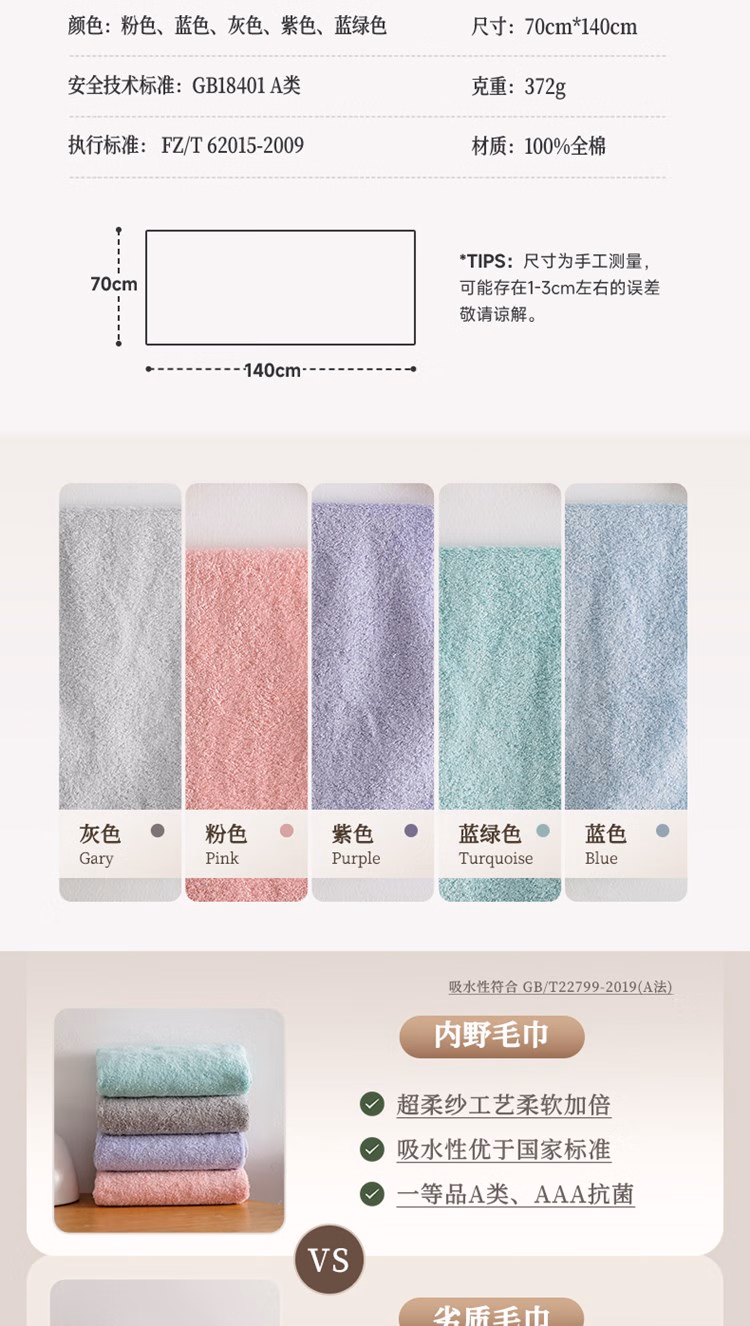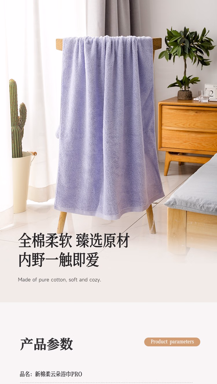 > 内野(UCHINO)弱捻棉柔云朵浴巾柔软洗脸毛巾纯棉家用吸水全棉浴巾紫色+洗衣袋