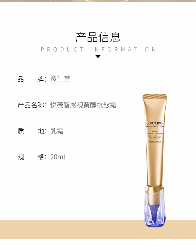 > 资生堂第二代悦薇智感小针管抗皱眼面霜20ml 淡化黑眼圈提拉紧致礼物女
