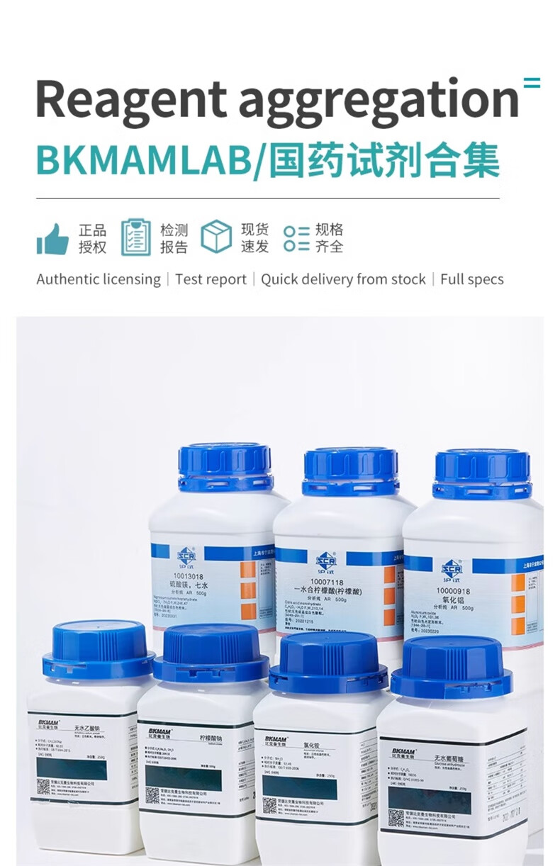 > 比克曼生物 氯化钾分析纯KCL缓释颗粒实验室用无机盐复合肥农用肥料国药沪试化学试剂 【国药试剂邮费6元,免费专票,量大价优】