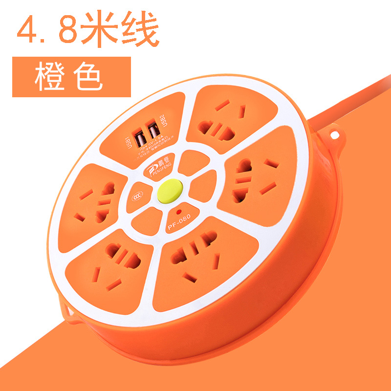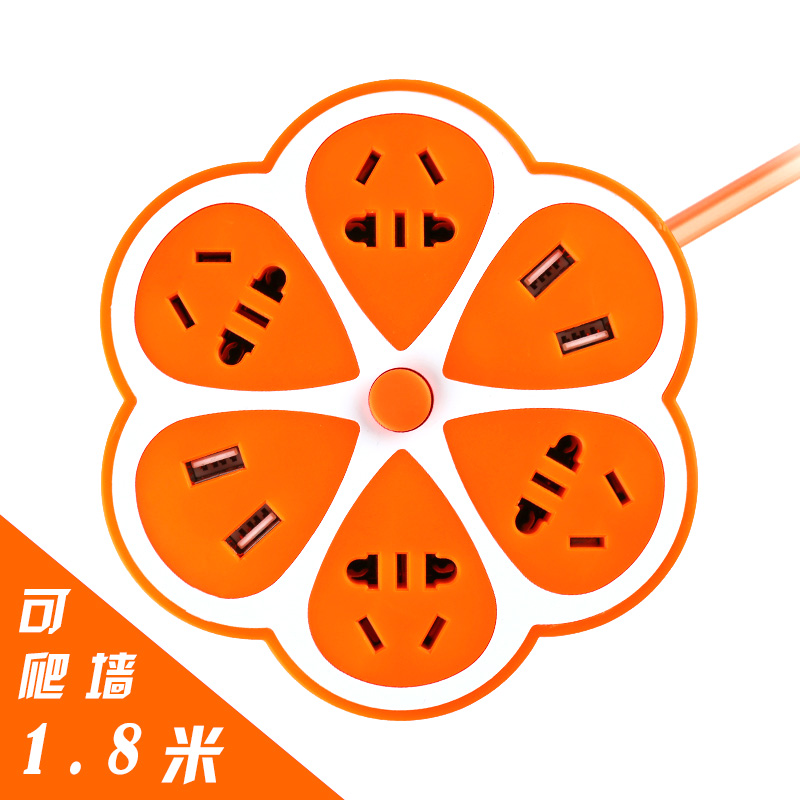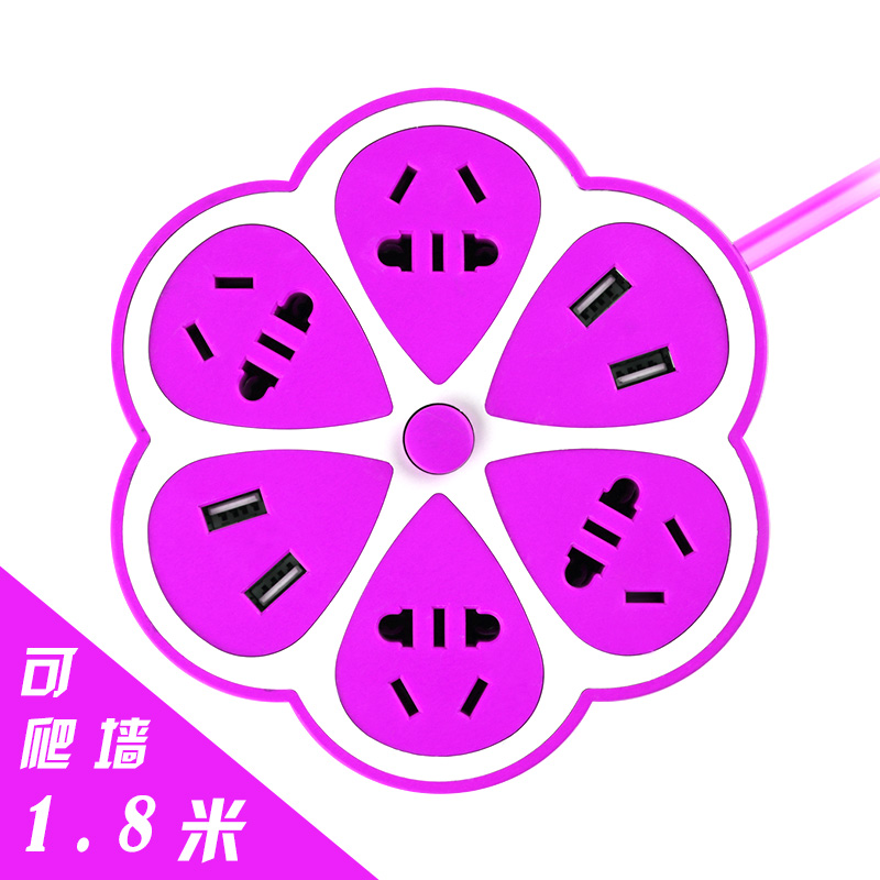 插板带线创意可爱多功能插座带usb充电源插排插线板拖线板接线板 梅花 蓝 1.8米 爬墙贴 usb灯