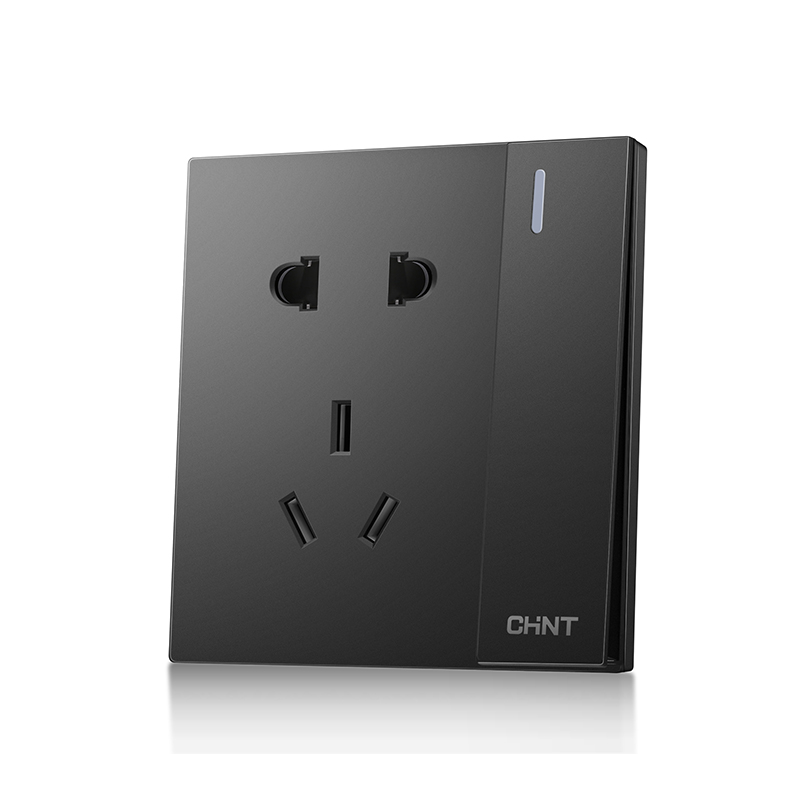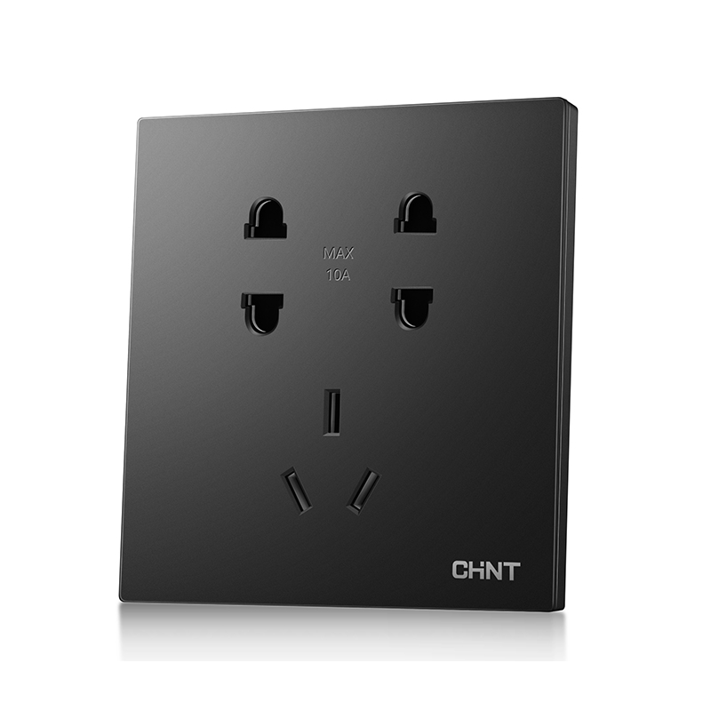 > 正泰开关插座面板 黑灰色开关插座 二三插五孔5孔插座面板16a插座开关 联体插座 NEW6T灰色 五孔10只装