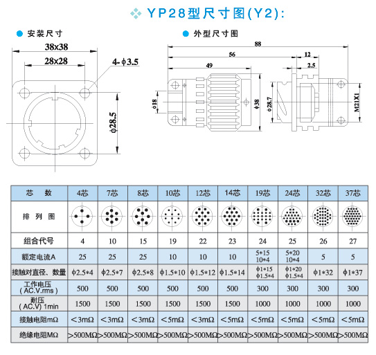快速卡扣航空插头YP28Y28M-4芯7芯8芯10芯12芯14芯19芯24芯32芯37 4芯(插头 插座)