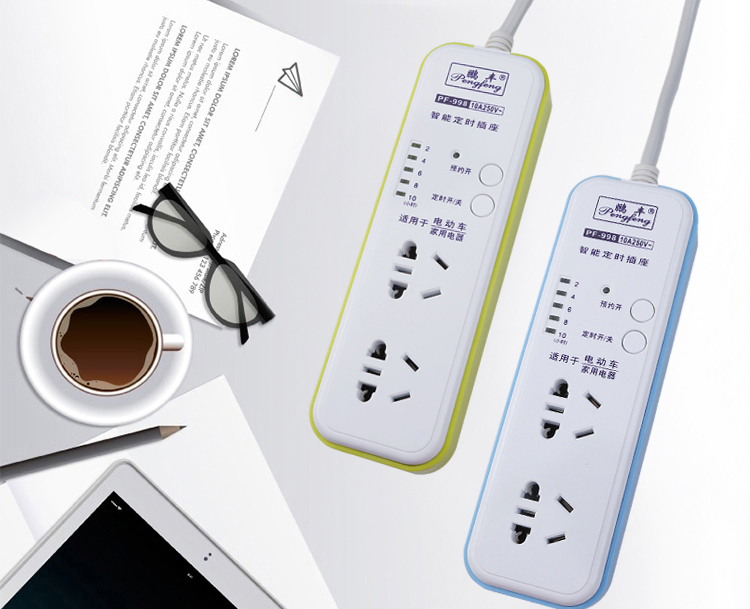 > 智能定时排插座电源带线拖线板接线板电车充电插排自动断电家用 蓝2.5米 2500W