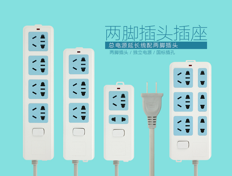 > 两项插头插排两脚插线板电源插座家用排插两芯拖线板两插头接线板 二插头 2位 1.8米