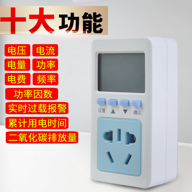 > 便携式功率计量插座电表插座电力监测仪测功率插座空调电器移动电表 T1010A