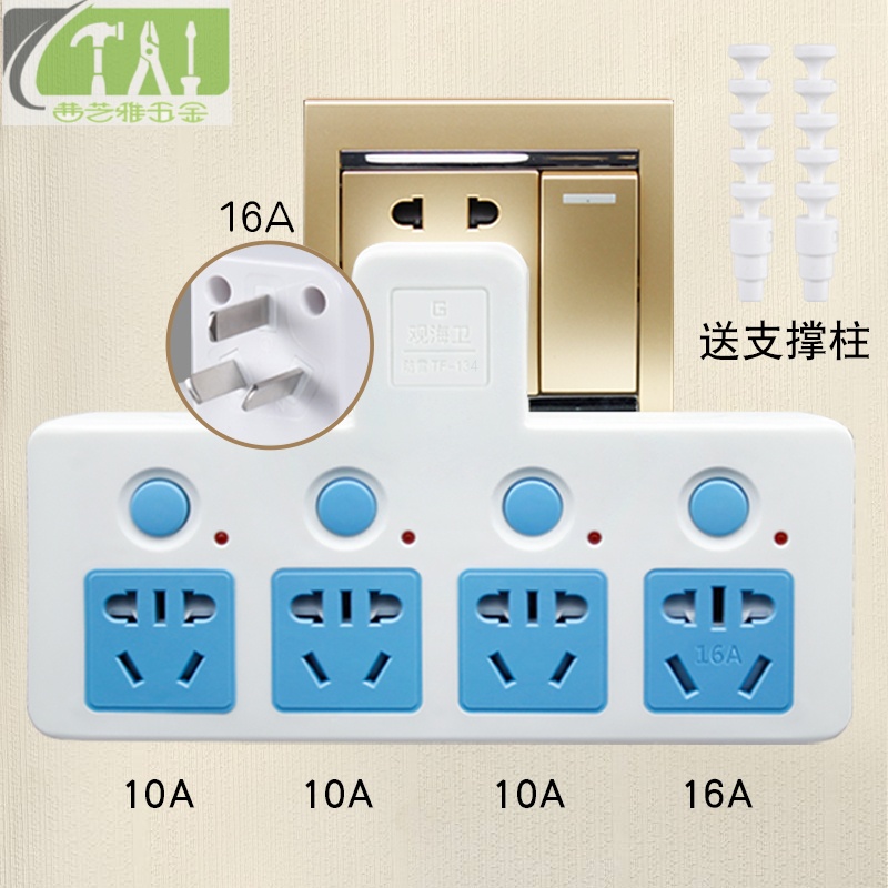 > 空调插座转换器16a转10a插排插板家用10安转多功能16安大功率插头 (空调款)16A转16A 10A*2 空调插座一分