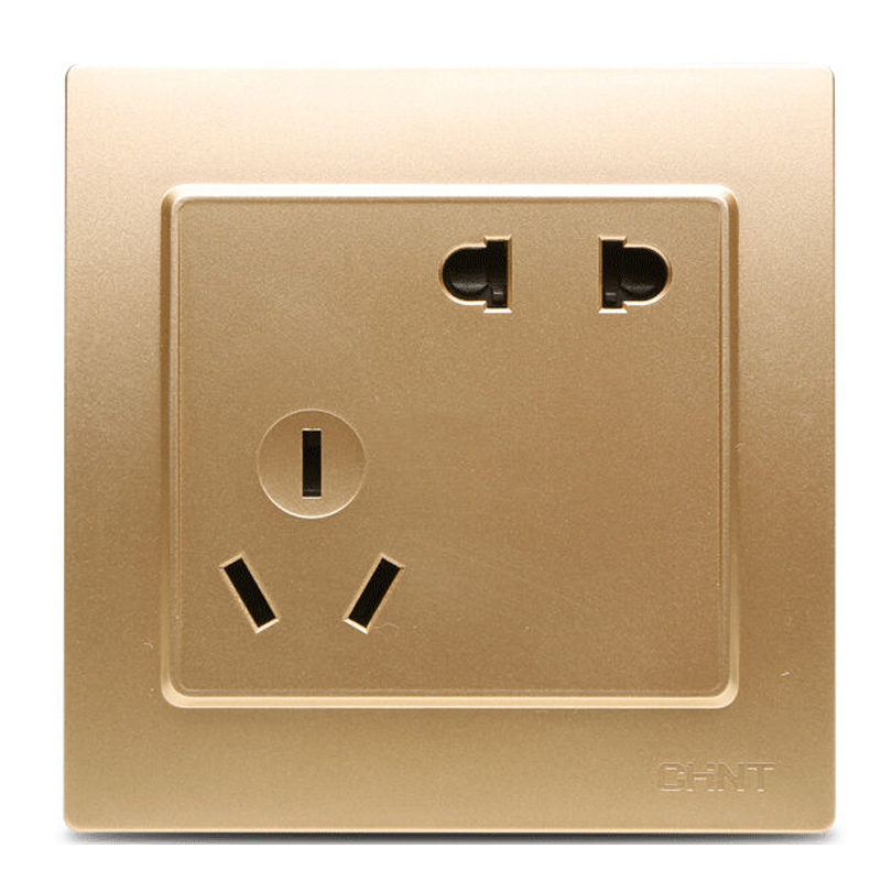 > 正泰开关插座 五孔插座 二三插 钢架墙壁开关插座面板 NEW7L香槟金色 正五孔单只装