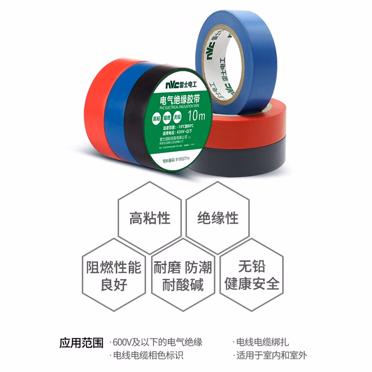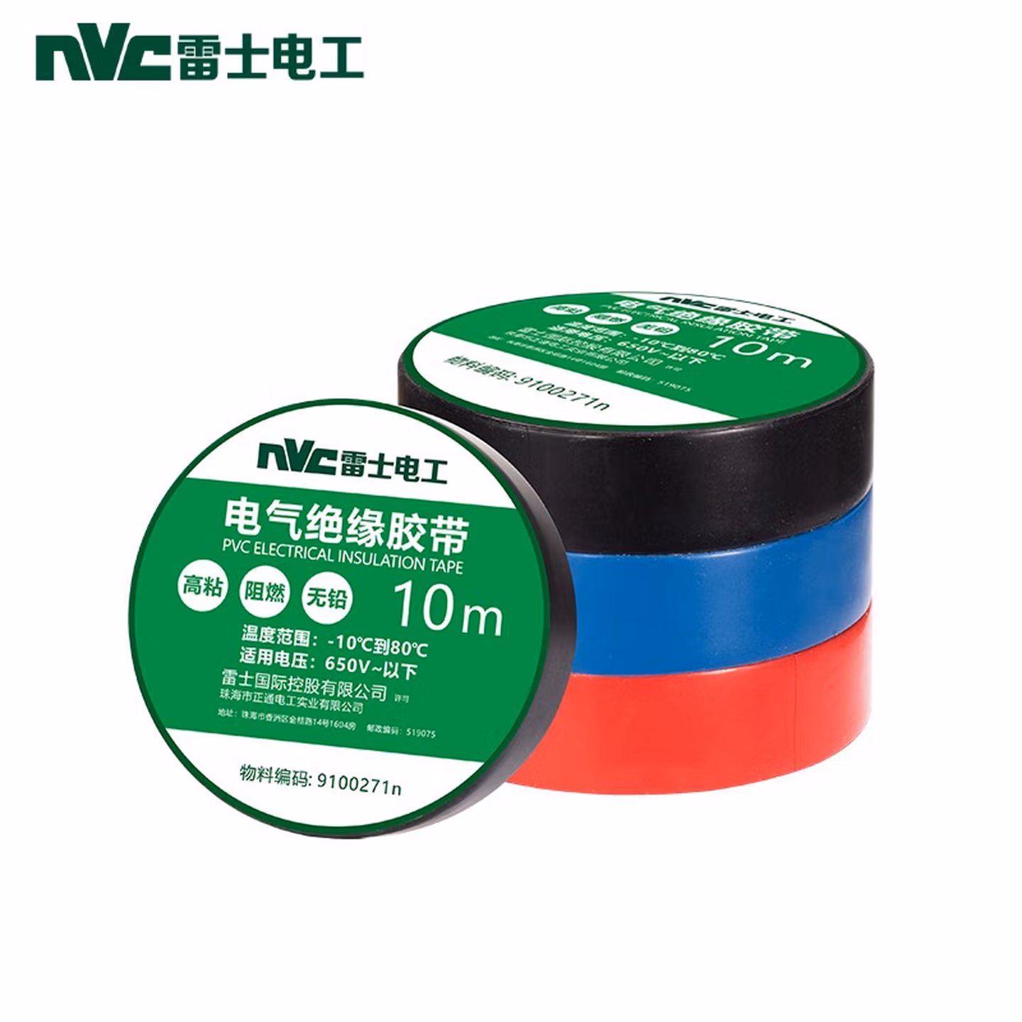 > 雷士电工(NVC)电工电料电工胶布 PVC电气绝缘胶带电工胶布无铅阻燃防水胶布10米 3只装