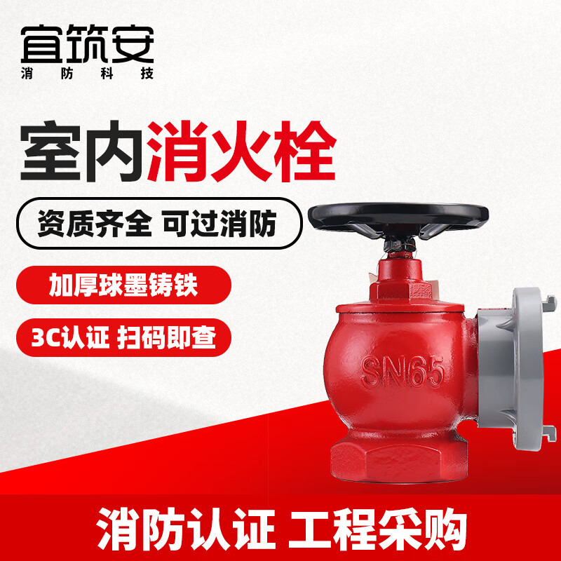 > 宜筑安 消防器材室内消防栓 室内消火栓进出水口DN65 2.5寸消防阀门室内栓普通款 SN65