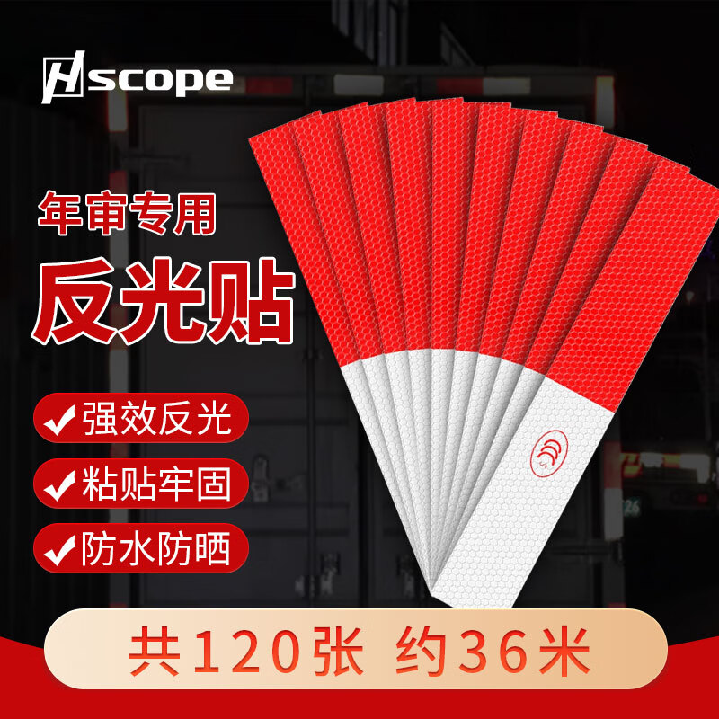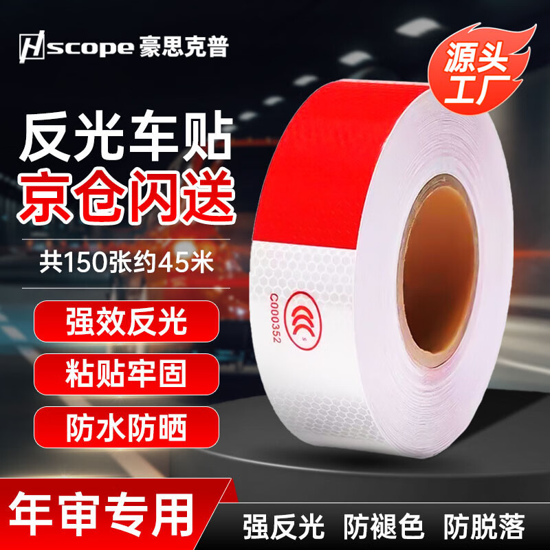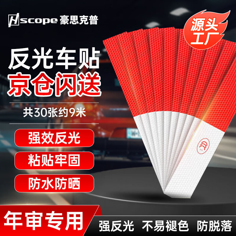 > 豪思克普 反光条货车反光贴【50张约15米】摩托车红白警示标识夜间荧光保持车距反光车身贴纸3C认证年检审车