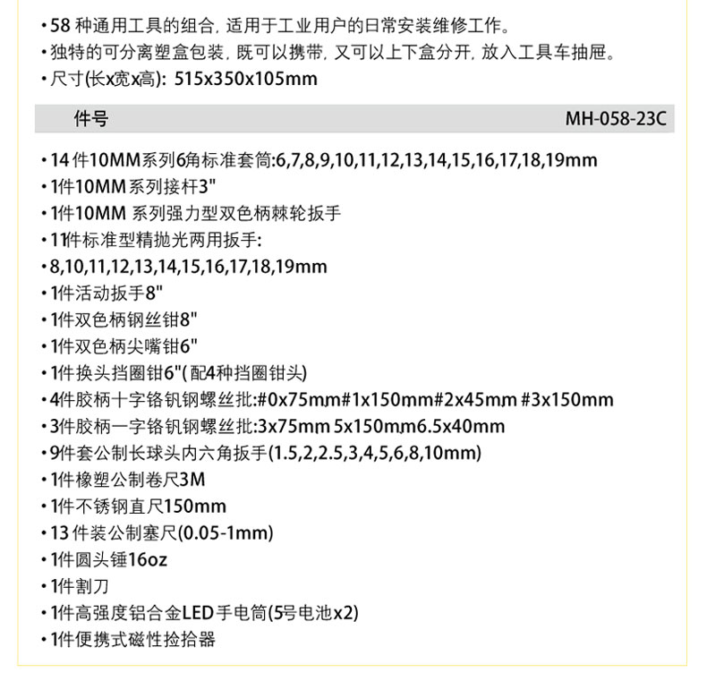 > 史丹利(STANLEY)MH-058-23C 58件套通用工具组套 机修组套 汽修扳手组套