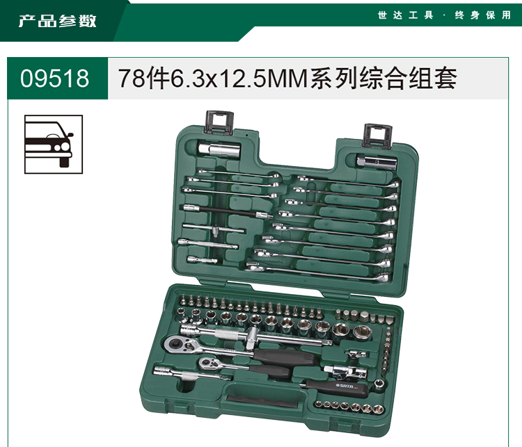 > 世达(SATA) 78件综合工具通用汽车摩托车组合套装 维修汽修工具托组套 09518 现货