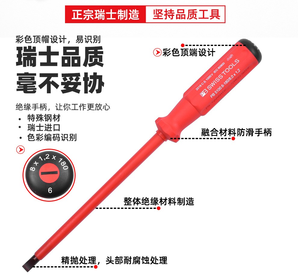 > PB SWISSTOOLS瑞士(PB SWISS TOOLS)绝缘螺丝刀 PB 5190.2-100 十字
