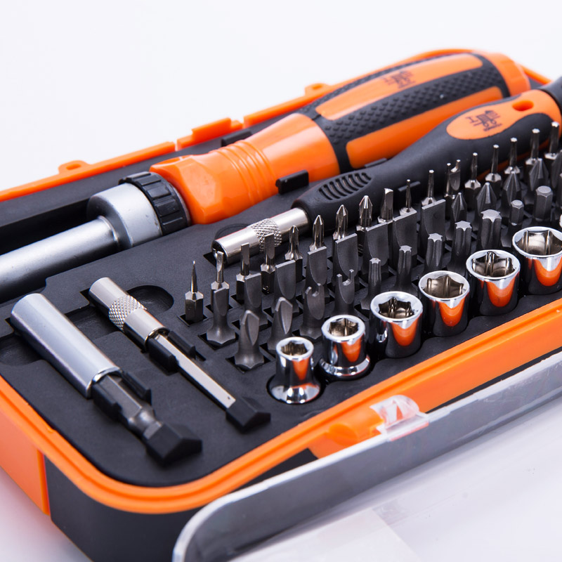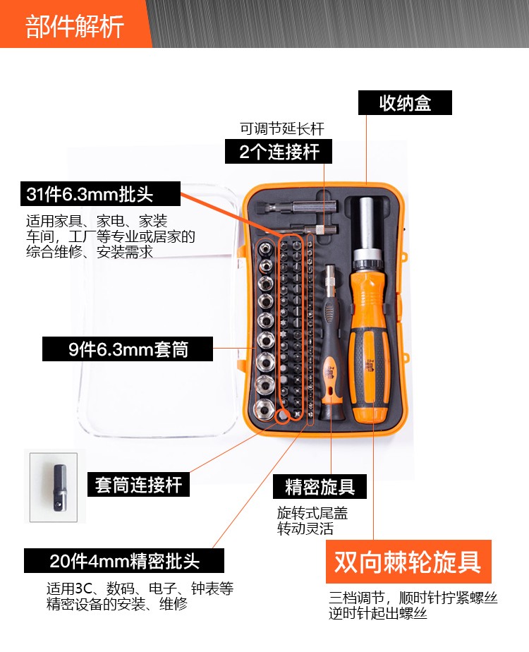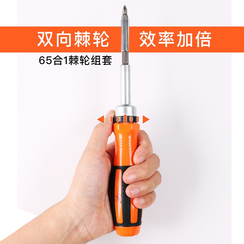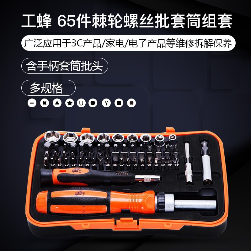 > 工蜂棘轮省力手柄65合1螺丝刀套装电讯五金手提工具箱组3当调节螺丝手柄家用起子套装