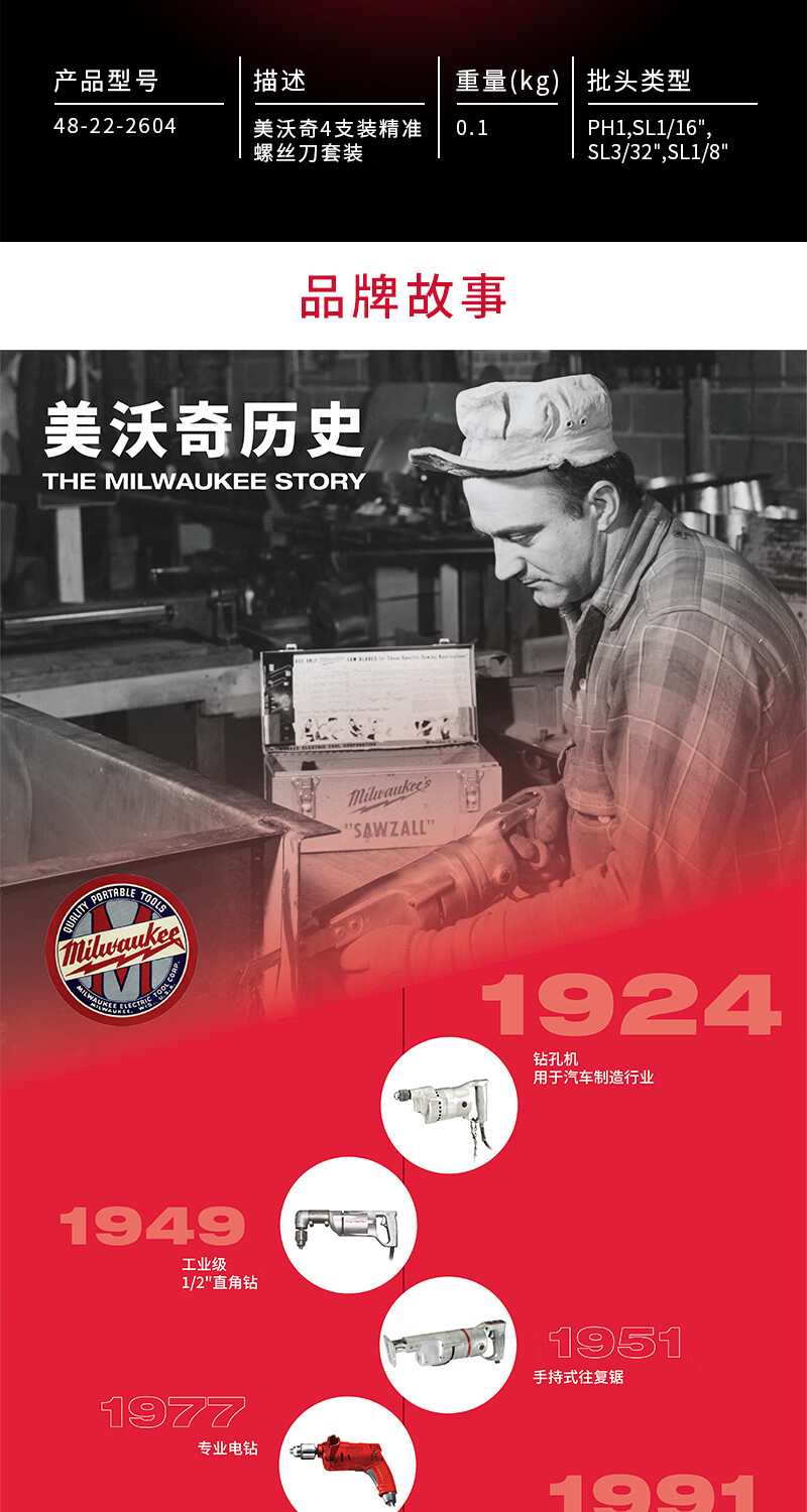 > 美沃奇 48-22-2604 4支装精准螺丝刀套装