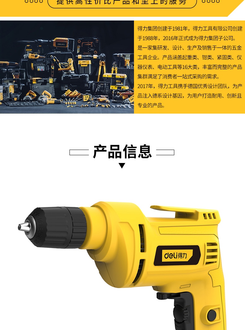 > 得力(deli) 可调速手电钻 500W多功能电动螺丝刀插电式手枪钻 DL601500 4K00001