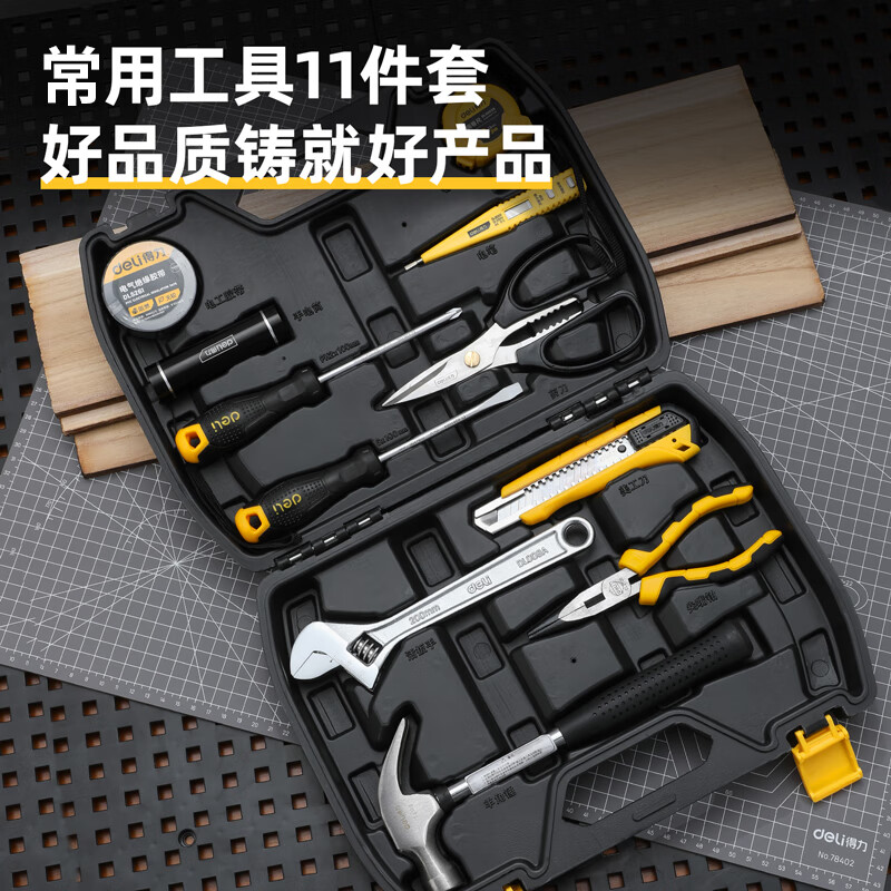 > 得力(deli) 多功能五金工具箱套装 手动工具电工维修工具箱应急包11件 DL5962 400250