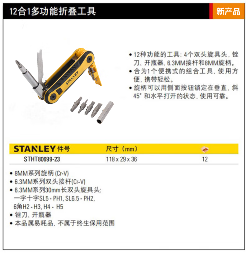 > 史丹利(STANLEY)STHT80699-23 12合1多功能折叠工具 螺丝刀组套