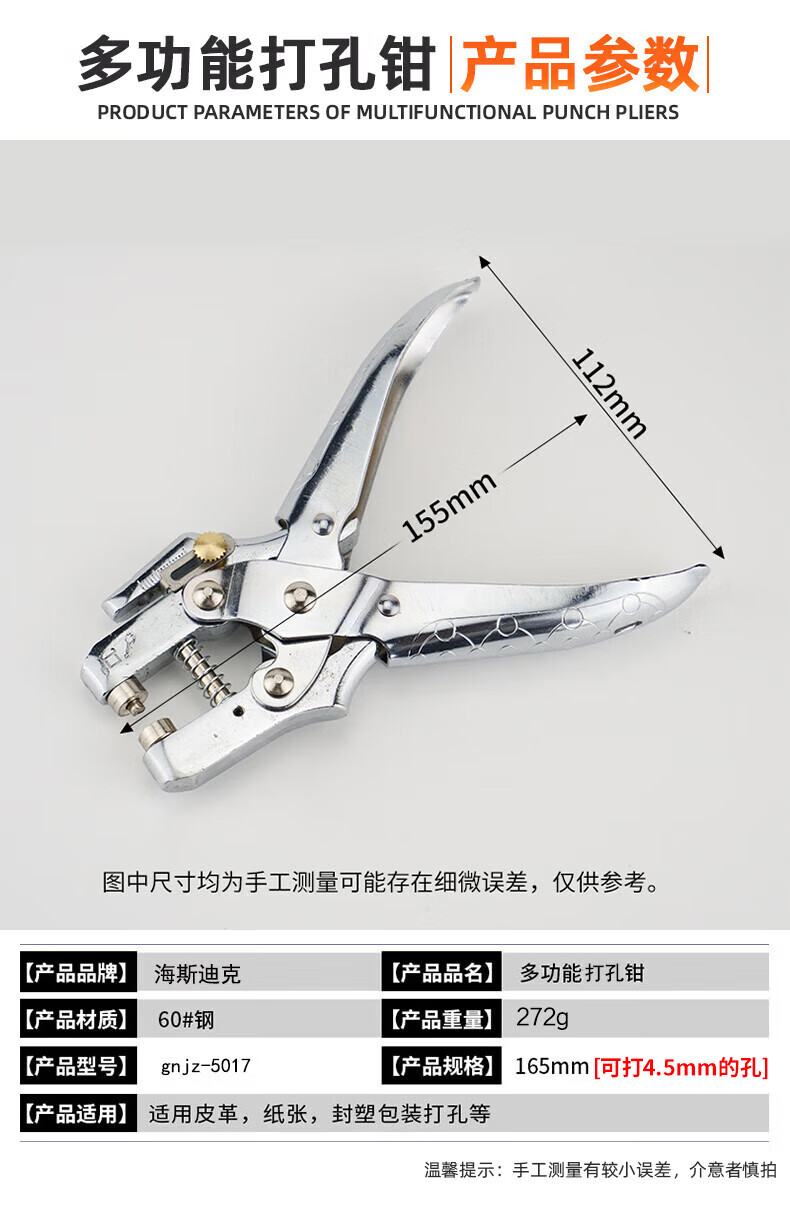 > 海斯迪克 多功能洞眼打孔钳 腰带金属护圈打孔工具 多功能打孔器 H-334