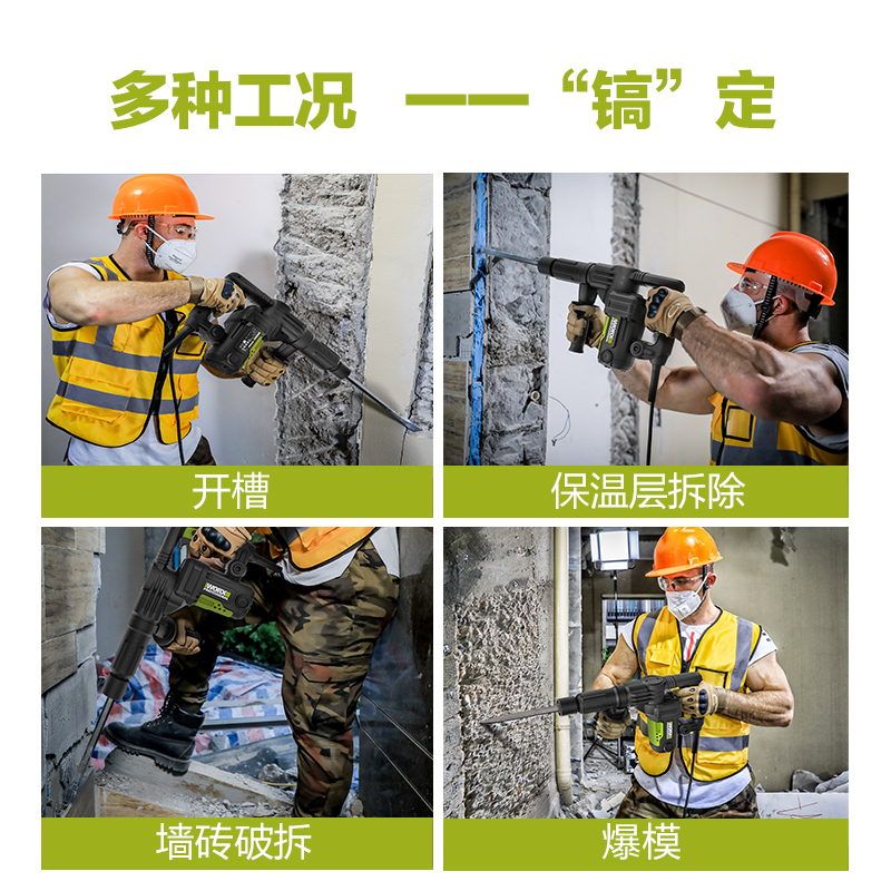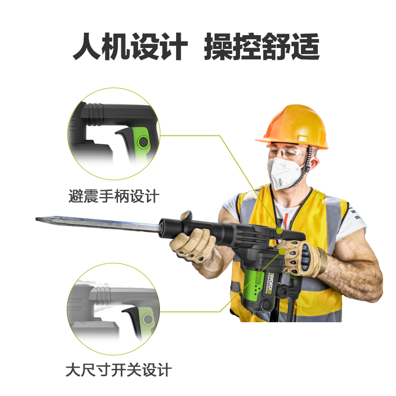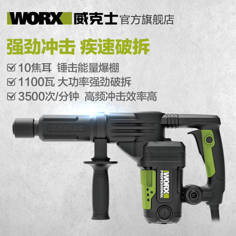> 威克士(WORX)工业级1100W大功率电镐WU358 开槽拆墙混凝土多功能电动工具