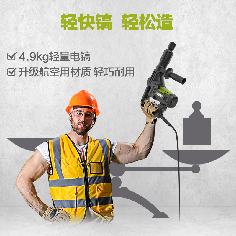 威克士(WORX)工业级1100W大功率电镐WU358 开槽拆墙混凝土多功能电动工具
