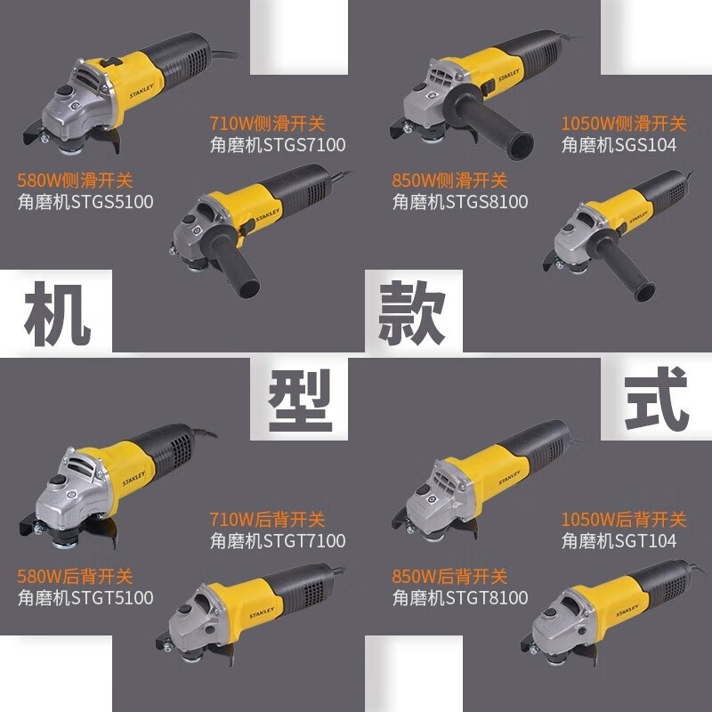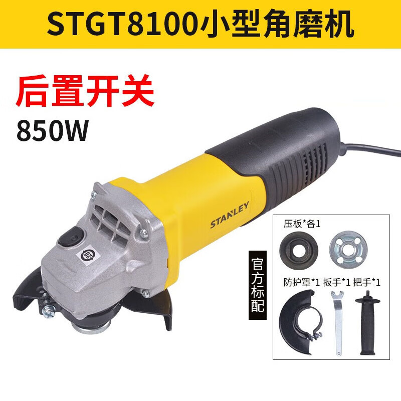 > 史丹利(STANLEY)100MM角磨机850W砂轮切割机打磨抛光机后置开关STGT8100