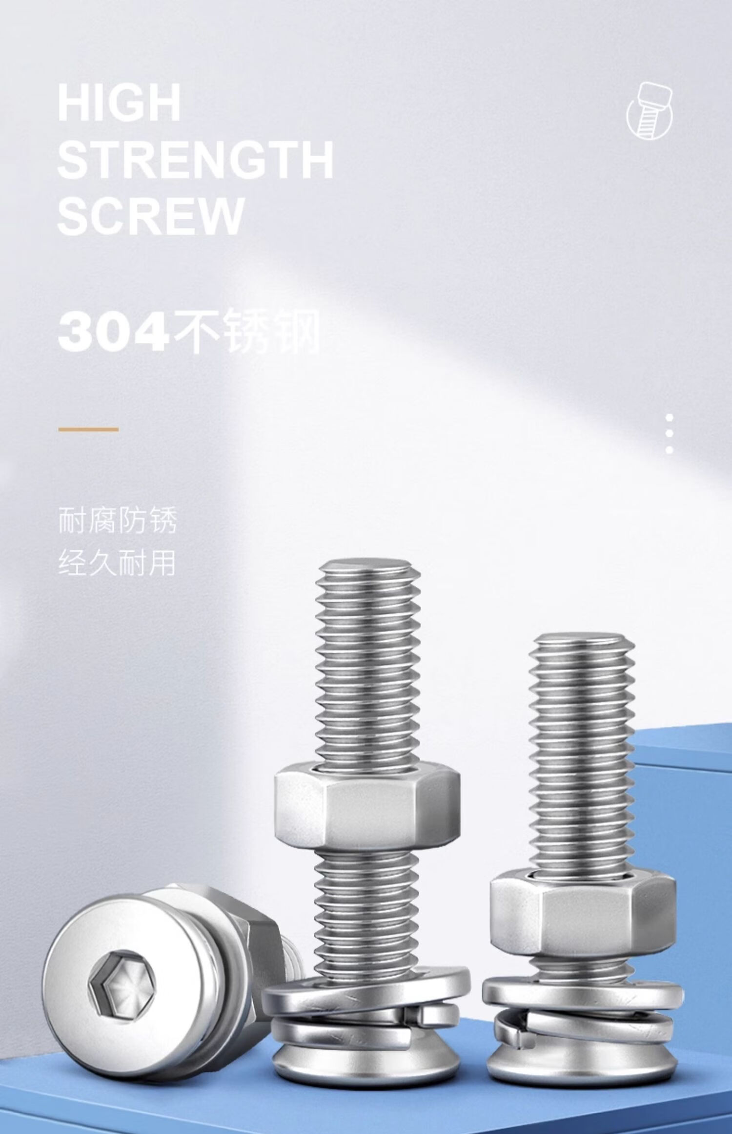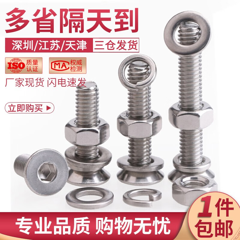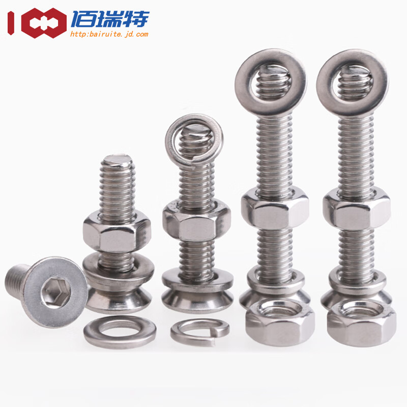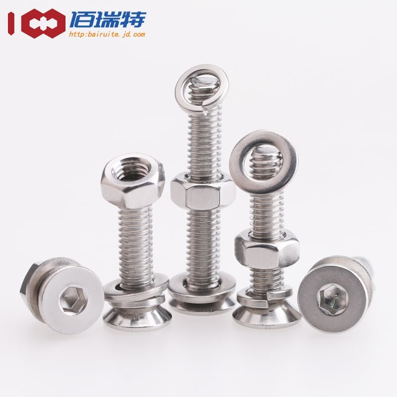 > 佰瑞特 304不锈钢沉头内六角螺丝螺母弹平垫套装大全平头螺栓组合螺钉 304沉头内六角(组套) M6*12mm【10套】