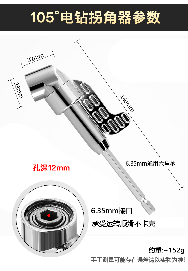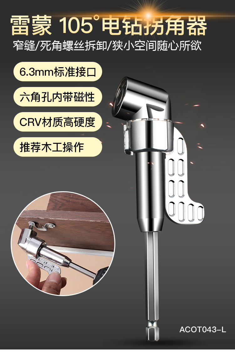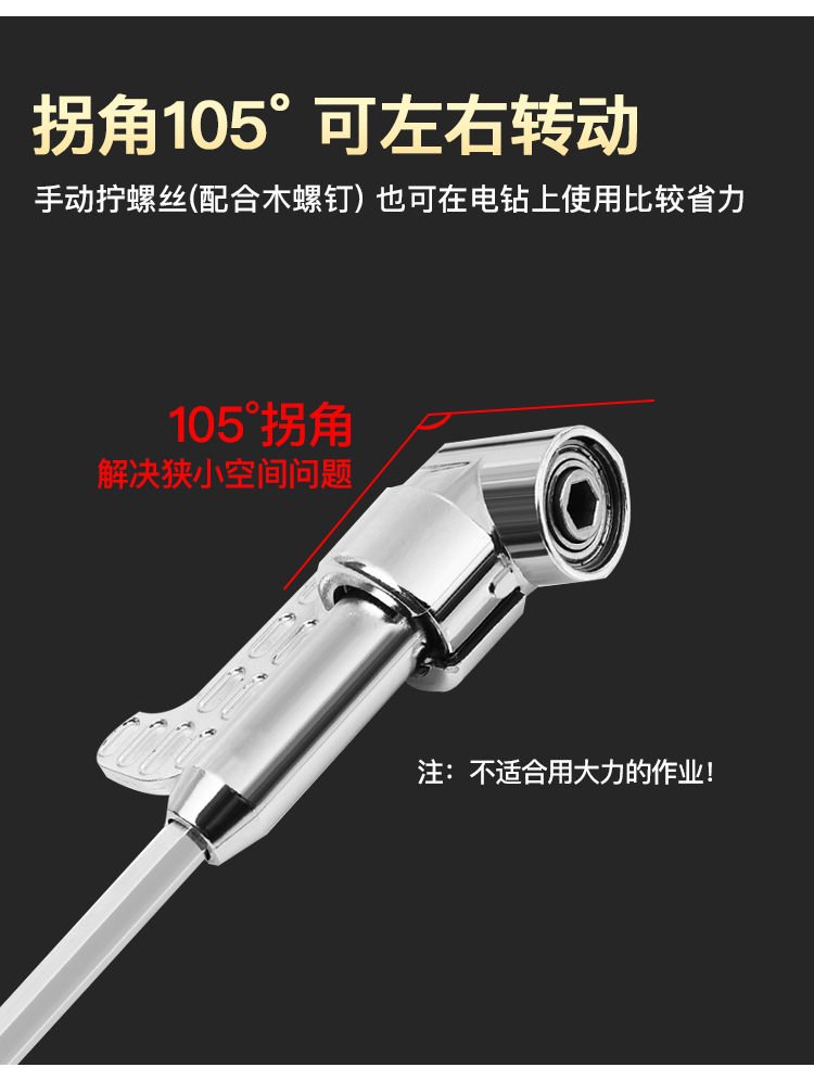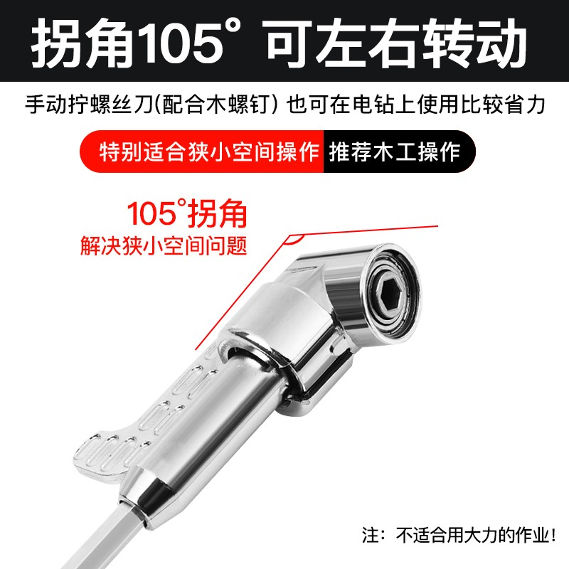> 雷蒙拐弯螺丝刀电钻拐角器多功能螺丝批头转弯电动转角器弯批拐批工具 【长款105°】