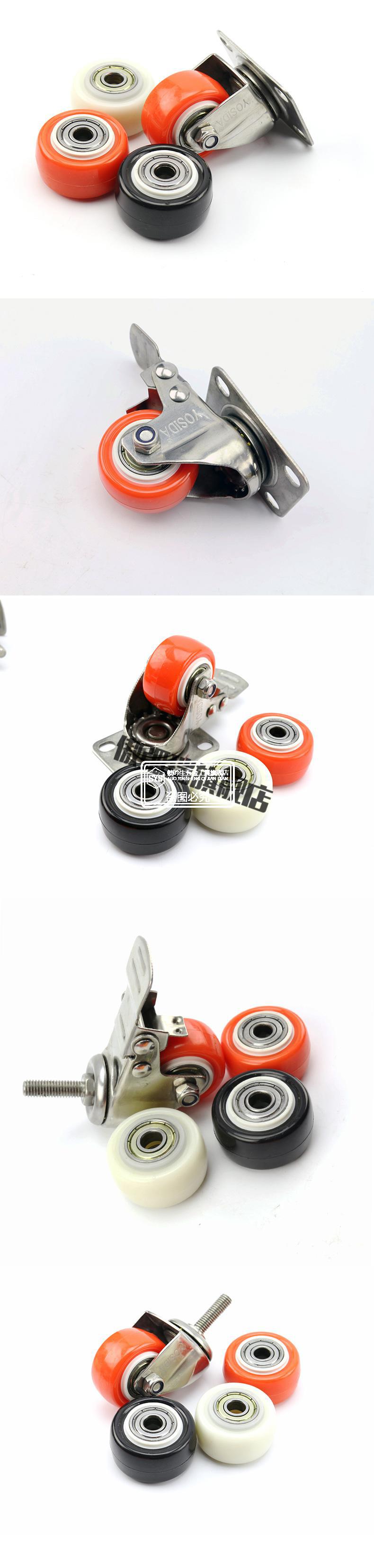 > 万向轮载重型2寸定向轮304不锈钢丝牙万向刹车脚轮聚氨酯静音尼龙轮茶几轮子 1.5寸定向轮