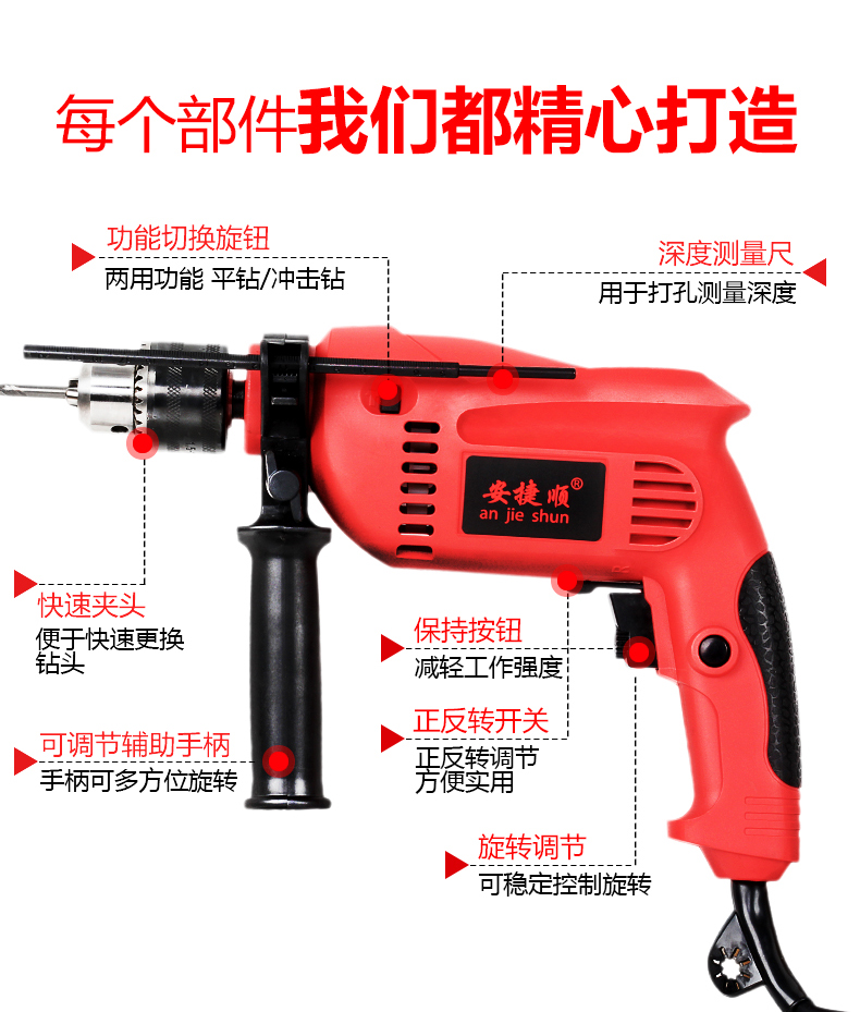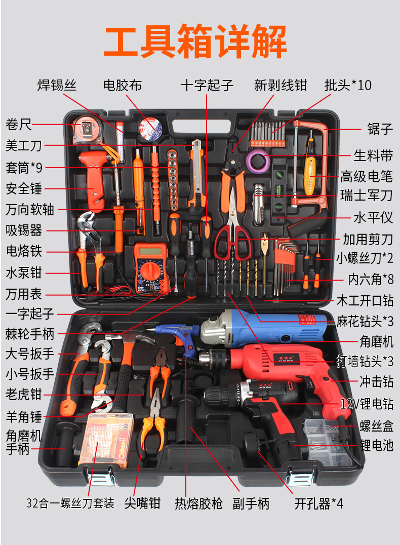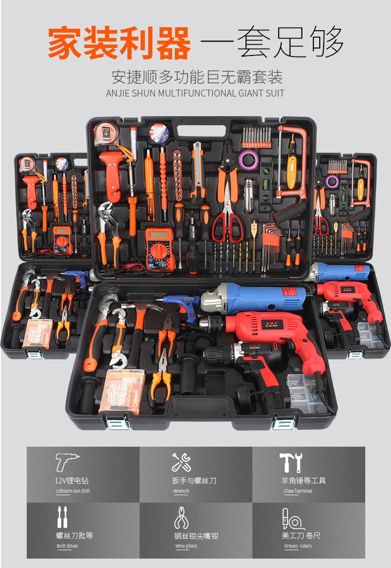 安捷顺 AJS-JWB五金工具箱家用木工工具套装电工维修组合套装电动螺丝刀角磨机冲击钻手电钻锂电钻电动工具
